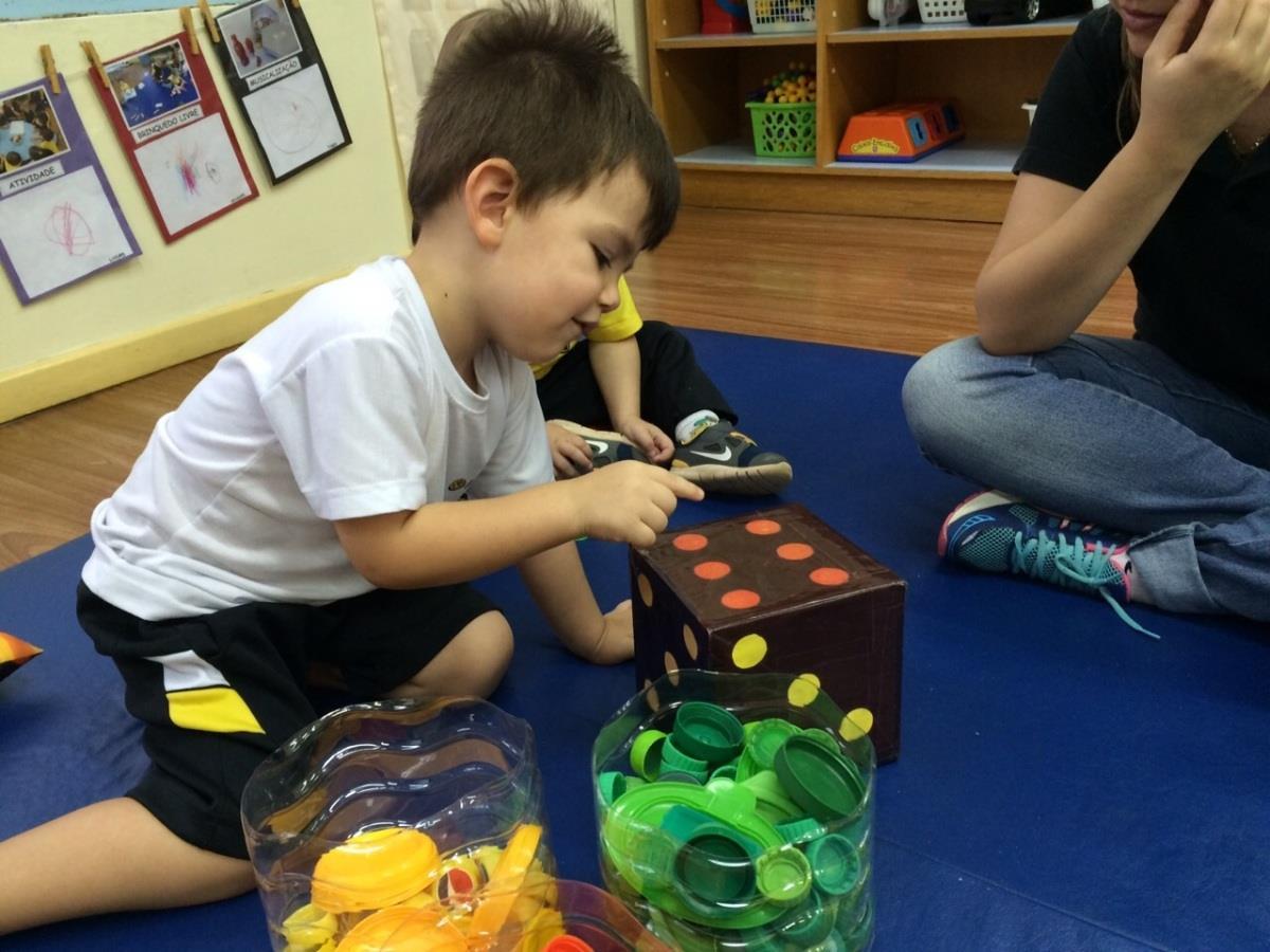 Conforme a Professora Ana, as brincadeiras e os jogos que envolvem os conceitos matemáticos fazem parte da rotina da turma. Através das atividades é realizada a contagem termo a termo, pequenos cálculos concretos, quantificação e a classificação.