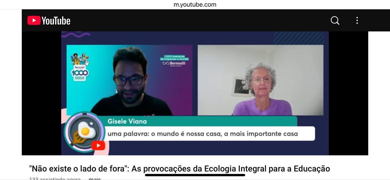 As professoras Michele Kopschina (Química) e Rita Cunha (Projeto de Vida e Língua Espanhola), da IENH – Unidade Fundação Evangélica, participaram na noite de ontem, dia 4 de junho, de uma formação promovida pelo Bernoulli com o tema “Não existe o lado de fora: as provocações da ecologia integral para a educação”. O encontro foi conduzido pela professora Aleluia Heringer, Doutora e Mestra em Educação, reconhecida por seu trabalho com sustentabilidade e ecologia integral.