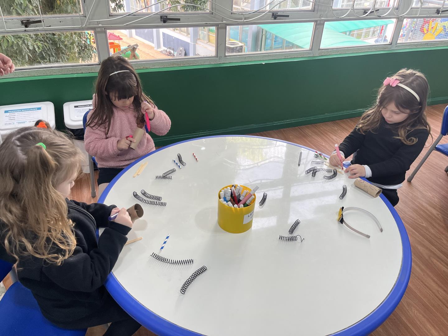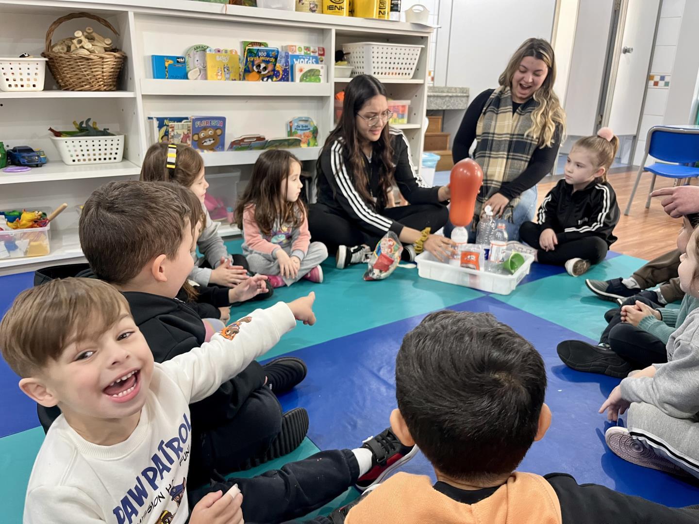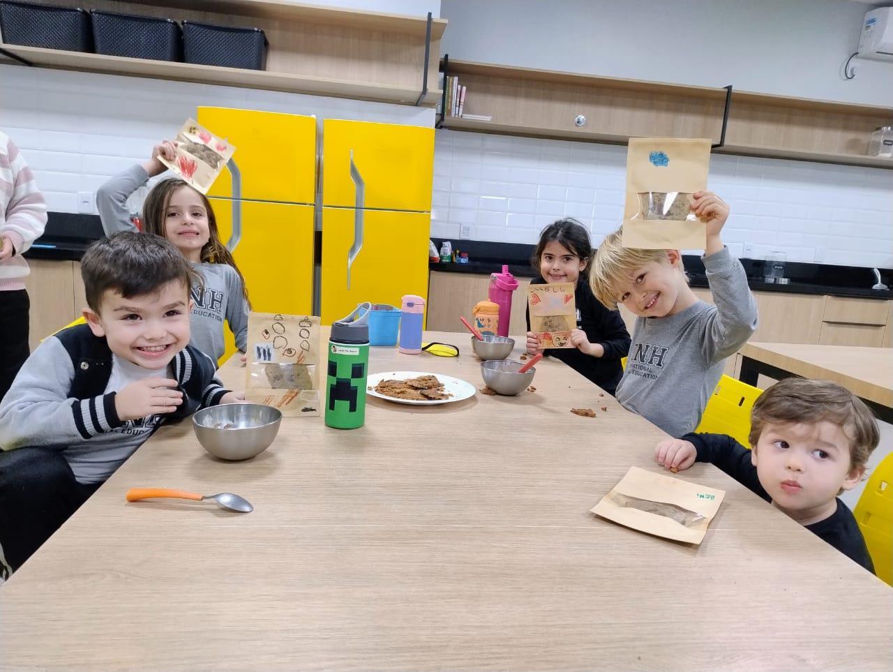 Na Unidade Pindorama, as experiências envolveram atividades práticas e interativas que encantaram os pequenos. Eles exploraram princípios da ciência com uma mágica reação entre balão, garrafa e bicarbonato de sódio, colocaram a mão na massa preparando biscoitos, trabalharam valores com a história "Perigoso", de Tim Warnes, e criaram seus próprios quebra-cabeças. Também participaram de uma divertida corrida de obstáculos, construíram um helicóptero voador nas “Asas da Imaginação” e se encantaram com a “Explosão de Cores”, envolvendo tintas e criatividade. A atividade “Som, Movimento e Números” uniu música e matemática de forma divertida, encerrando a programação com muito ritmo e aprendizado.
