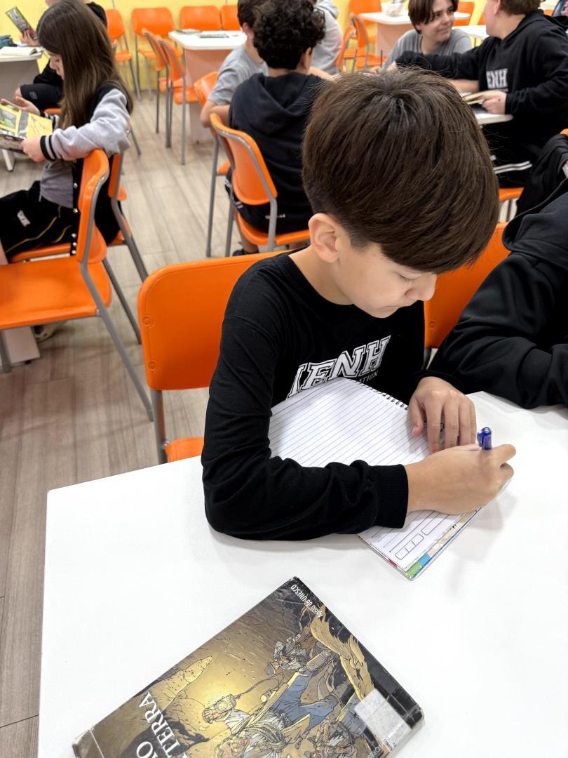 A professora Edilaine Vieira Lopes conduziu atividades de pesquisa com o uso do dicionário, explorando os significados dos termos igualdade e equidade. As discussões foram inspiradas no livro “Ninguém aprende samba no colégio”, lido pela turma, que aborda a relevância da identidade afrodescendente na formação da cultura e da música brasileira — incluindo o samba, os instrumentos, as rodas de capoeira e grandes nomes da música preta no Brasil.