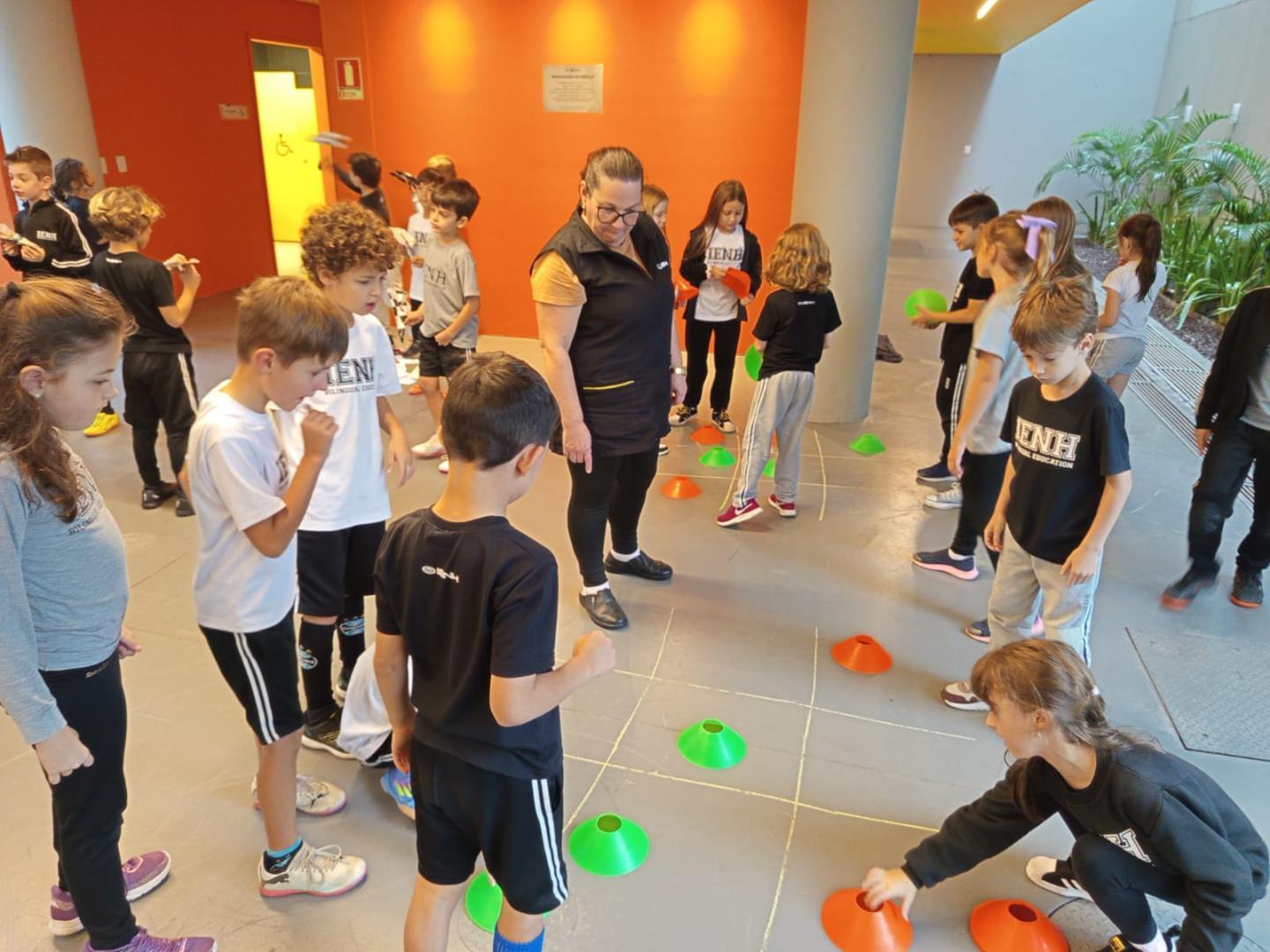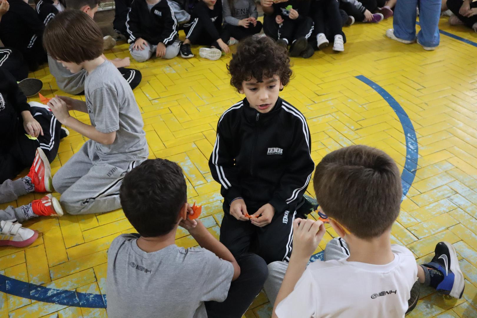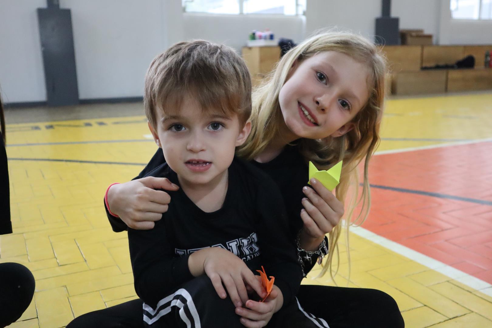 As turmas também exploraram jogos cooperativos como bingo, freeze dance, Simon says (chefe manda), dobradura, cama de gato e o jogo do saci, em experiências que estimularam a criatividade e o trabalho em grupo.