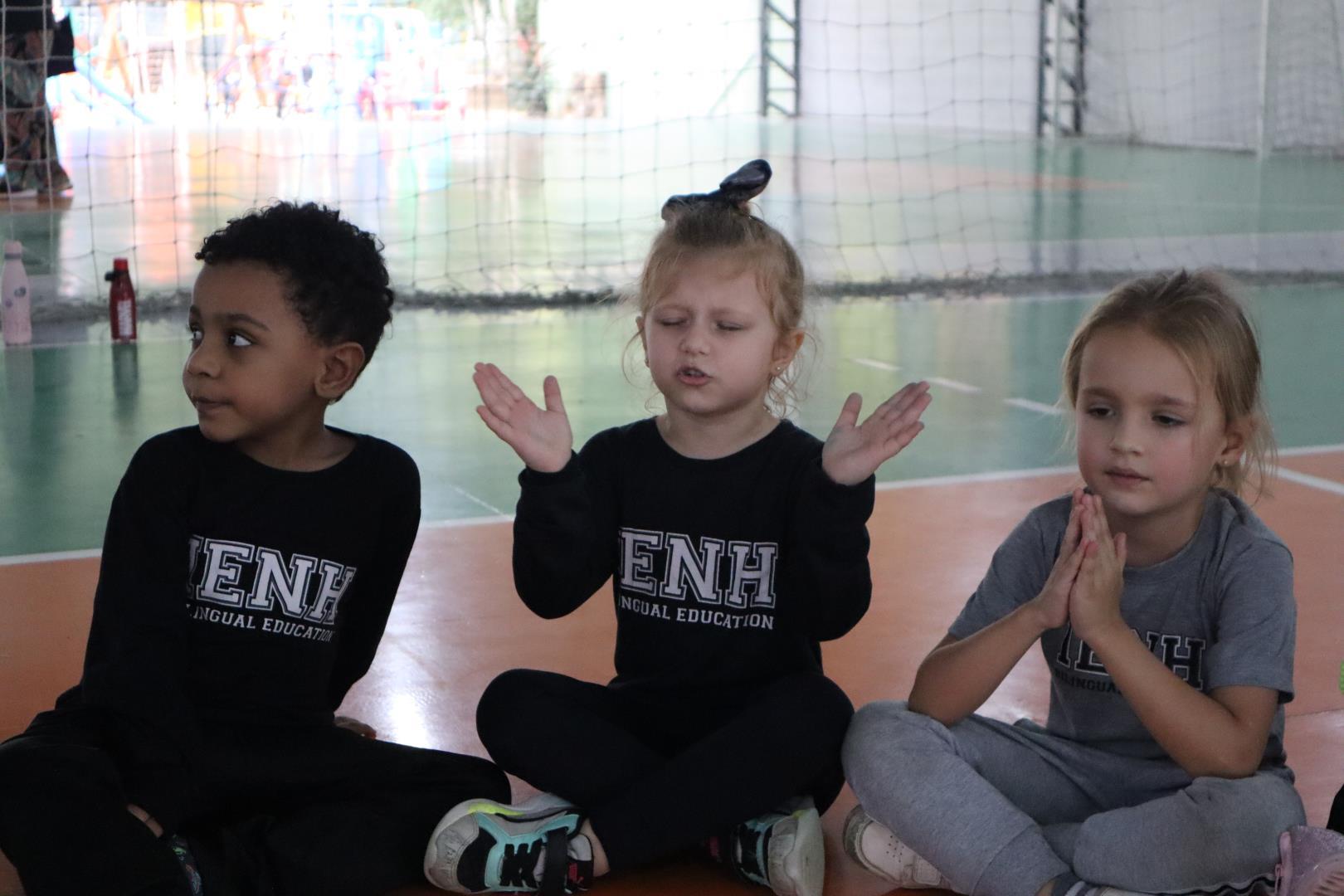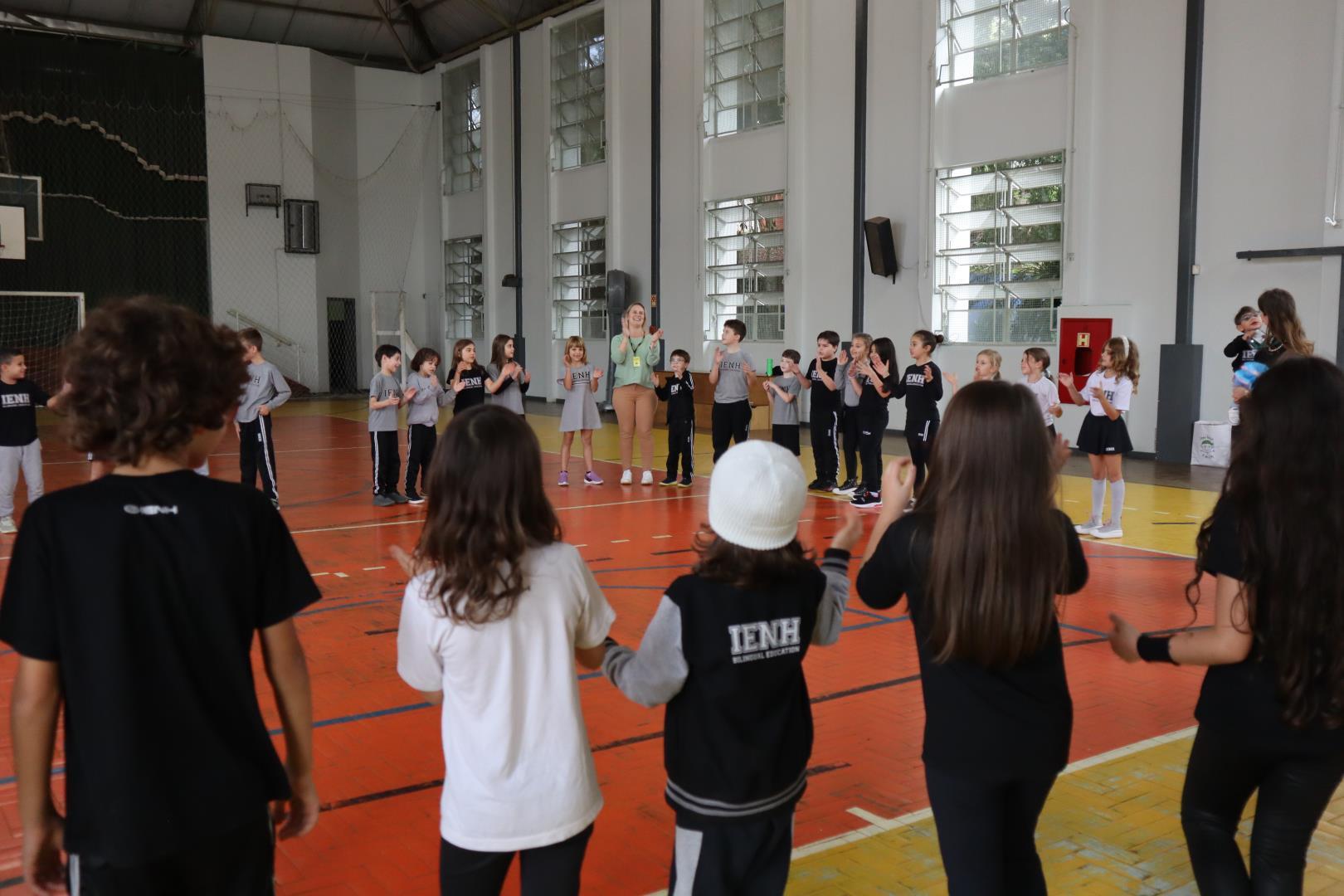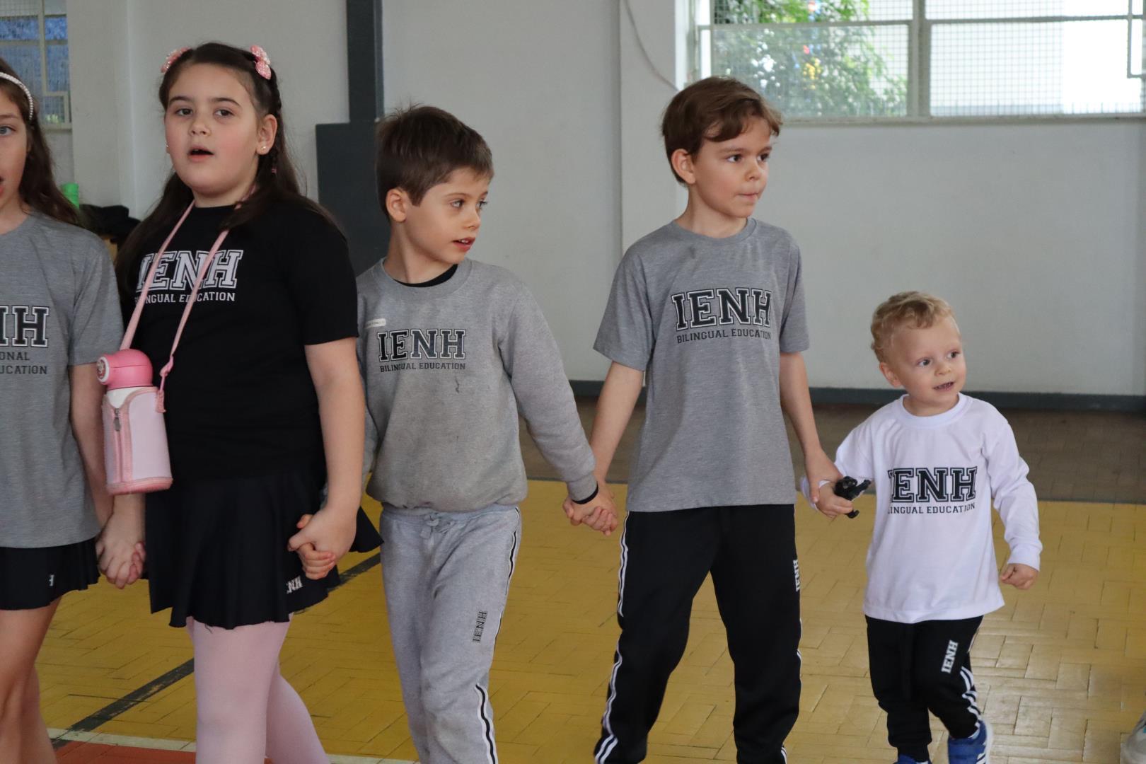 Já na Unidade Oswaldo Cruz, a contação de história da Cachinhos Dourados encantou os pequenos, enquanto o storytelling conduzido pelos alunos do Year 6 do Ensino Fundamental do Currículo Internacional Bilíngue da IENH trouxe uma perspectiva criativa à narrativa. A Parada do Brincar seguiu a mesma proposta da Unidade Pindorama, promovendo a interação entre turmas de diferentes faixas etárias e a inclusão de brinquedos não estruturados, tecidos e jogos de tabuleiro.