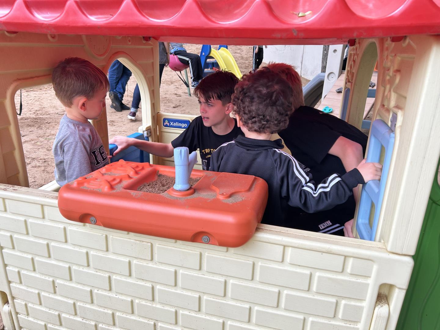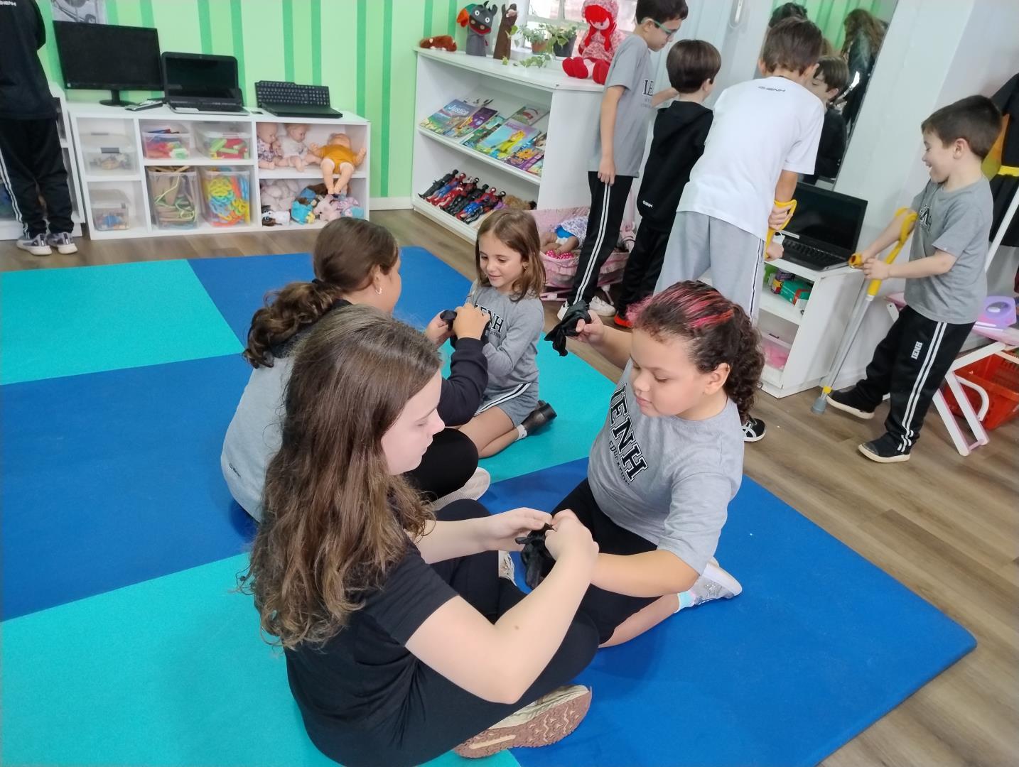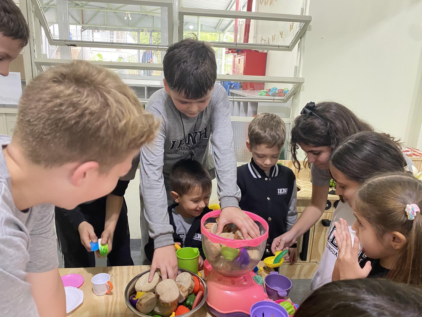 Já na Unidade Oswaldo Cruz, a contação de história da Cachinhos Dourados encantou os pequenos, enquanto o storytelling conduzido pelos alunos do Year 6 do Ensino Fundamental do Currículo Internacional Bilíngue da IENH trouxe uma perspectiva criativa à narrativa. A Parada do Brincar seguiu a mesma proposta da Unidade Pindorama, promovendo a interação entre turmas de diferentes faixas etárias e a inclusão de brinquedos não estruturados, tecidos e jogos de tabuleiro.