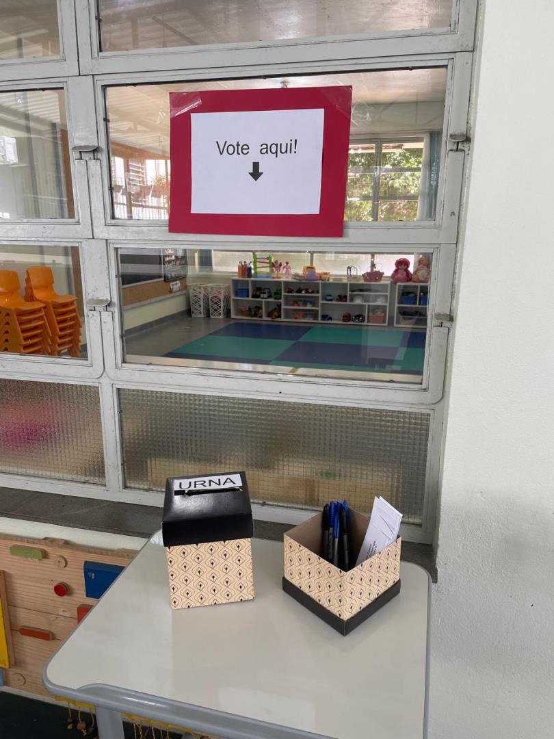 As turmas da IENH - Unidade Oswaldo Cruz participaram, no dia 8 de dezembro, de uma votação para definir o nome do espaço onde ficam as tartarugas da escola. Cada turma registrou seu voto entre três opções: Casa do Casco, Toca da Tartaruga e Turma do Casco.