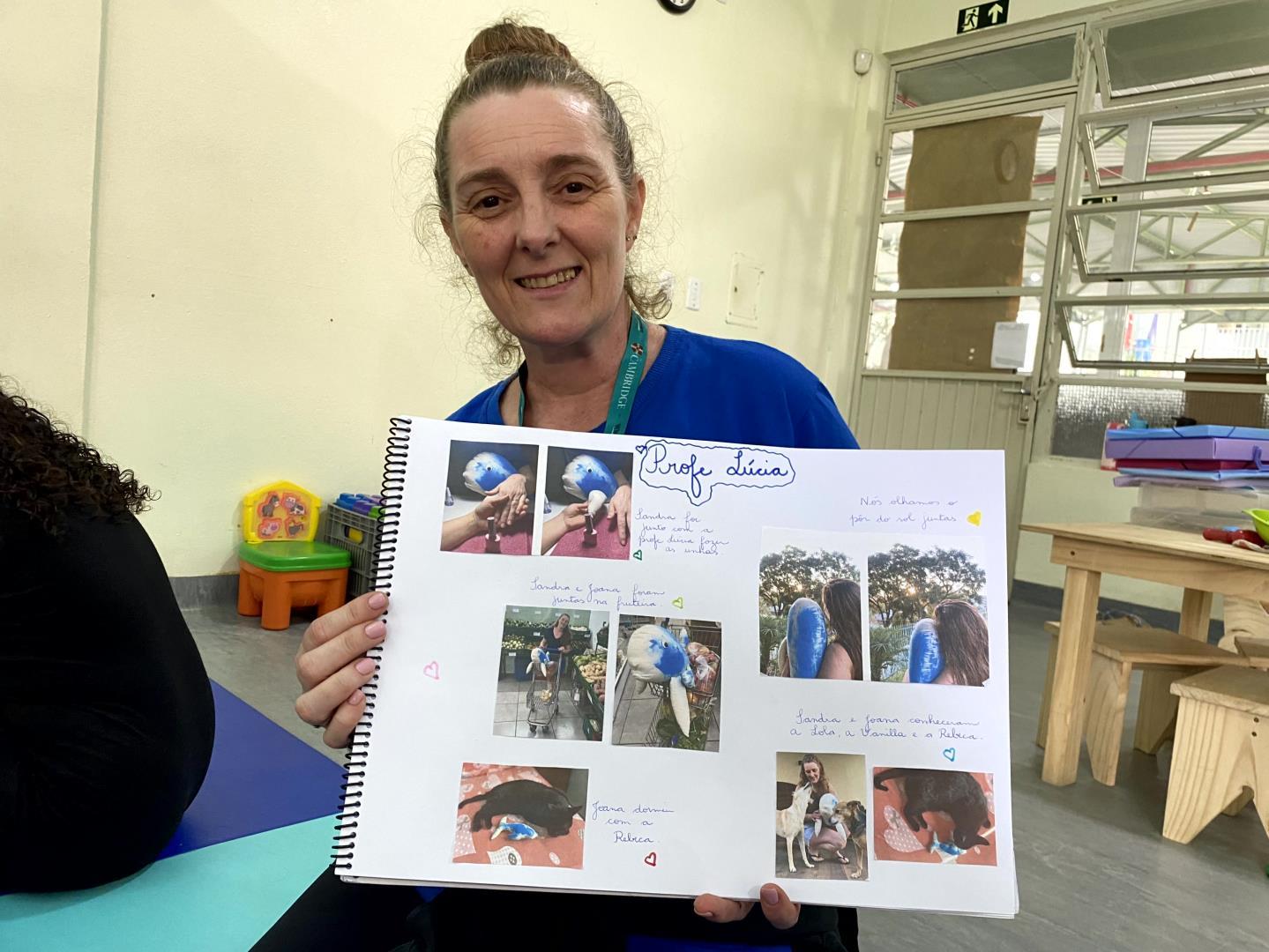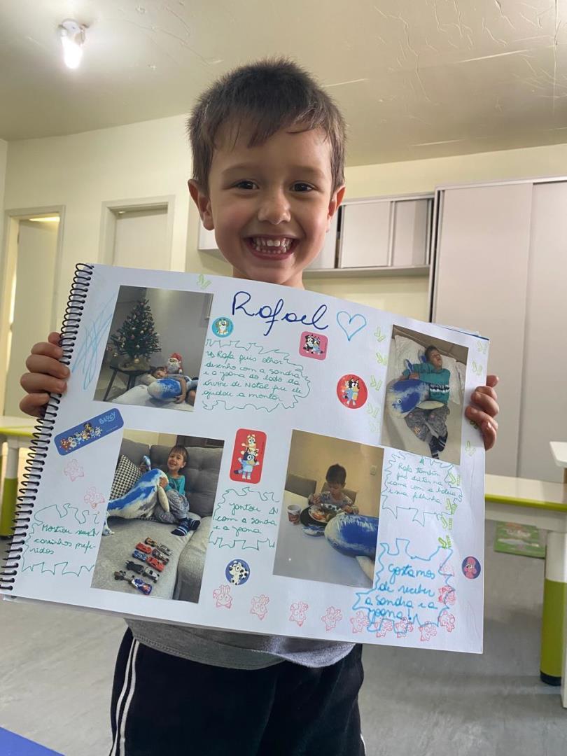 Por meio de um sorteio, cada criança, e até as professoras, tinha a oportunidade de levar as mascotes para casa por duas noites. Durante esse período, as baleias participavam das brincadeiras, das atividades diárias e se tornavam companheiras especiais das famílias. As crianças aproveitavam o momento para contar aos familiares tudo o que haviam aprendido sobre o animal ao longo do projeto.