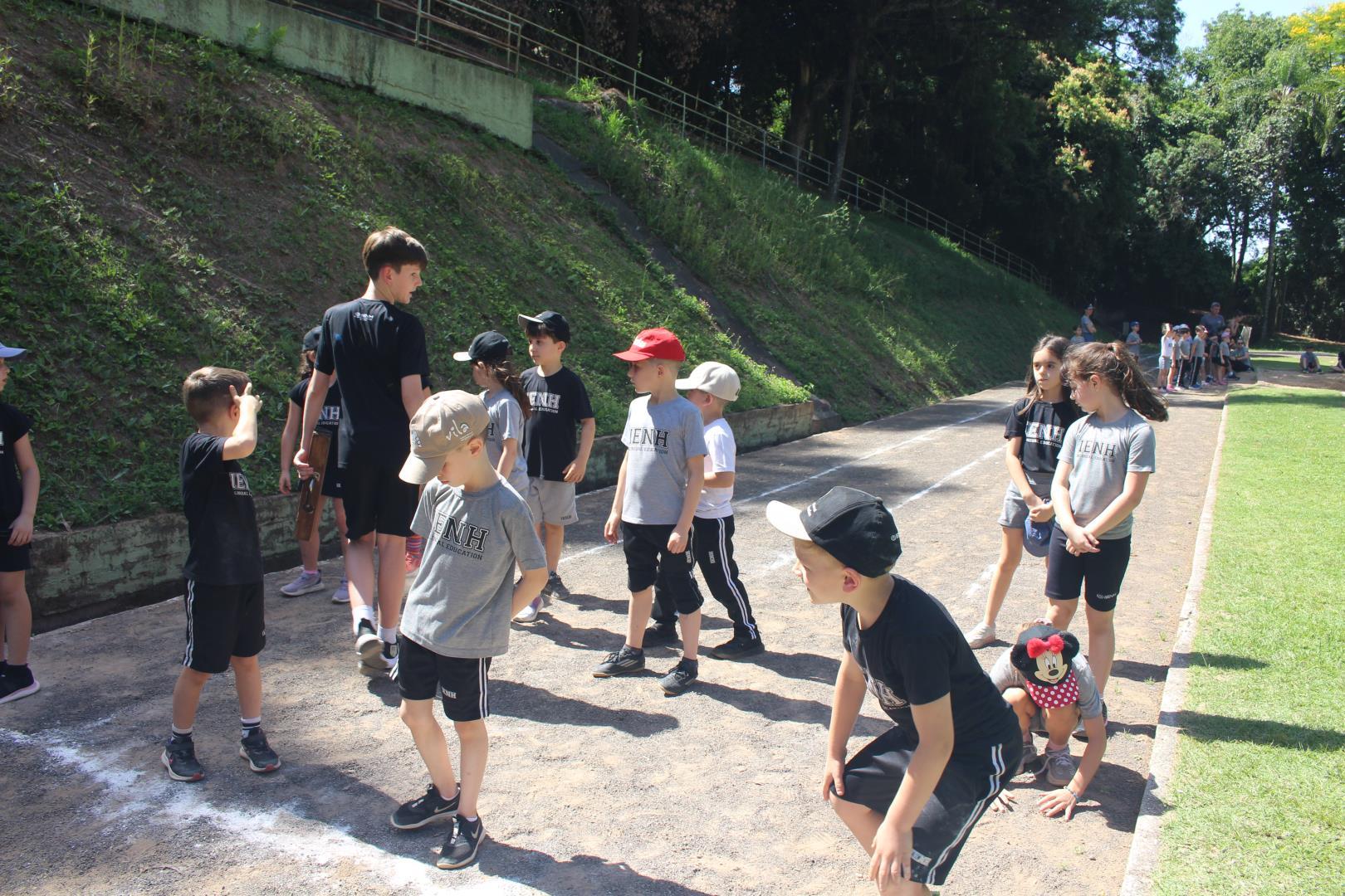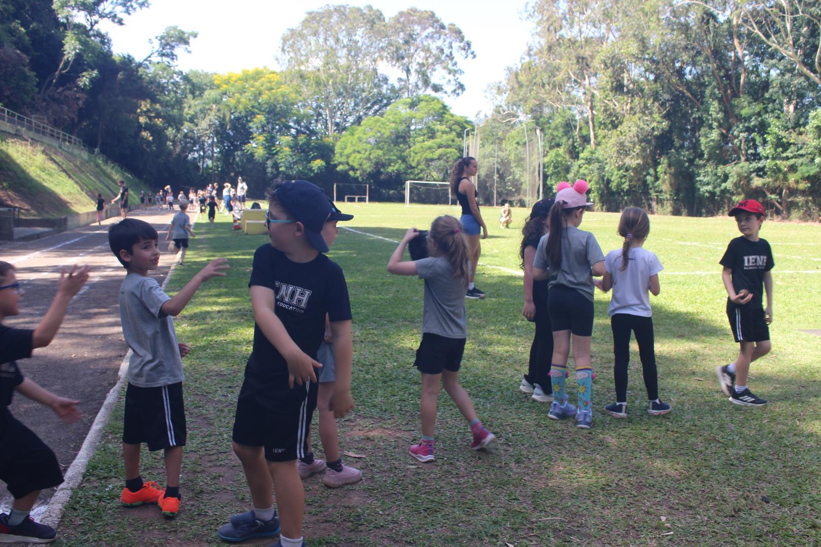No dia 19 de novembro, as turmas de Year 1 do Ensino Fundamental do Currículo Internacional Bilíngue da IENH - Unidade Oswaldo Cruz tiveram uma tarde repleta de movimento e descobertas na Unidade Fundação Evangélica. No Campo de Atletismo, os estudantes participaram de diversas práticas esportivas, como salto em distância, salto em altura, corridas e lançamento de pelota.