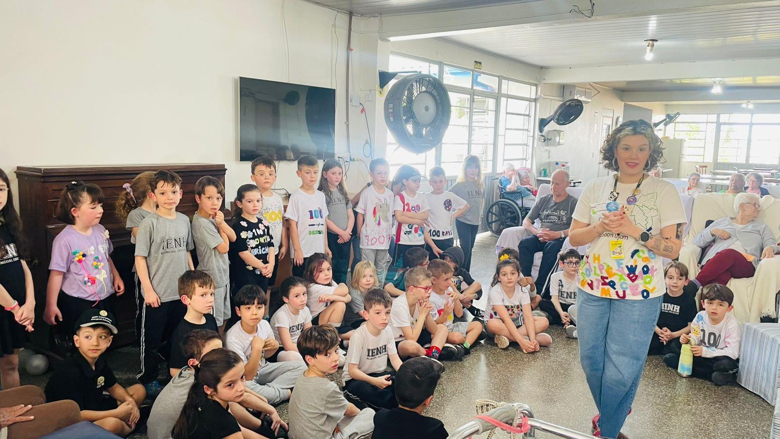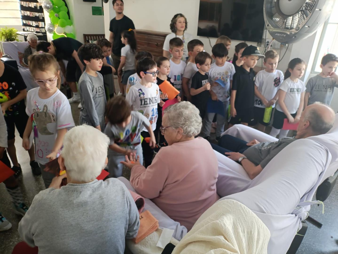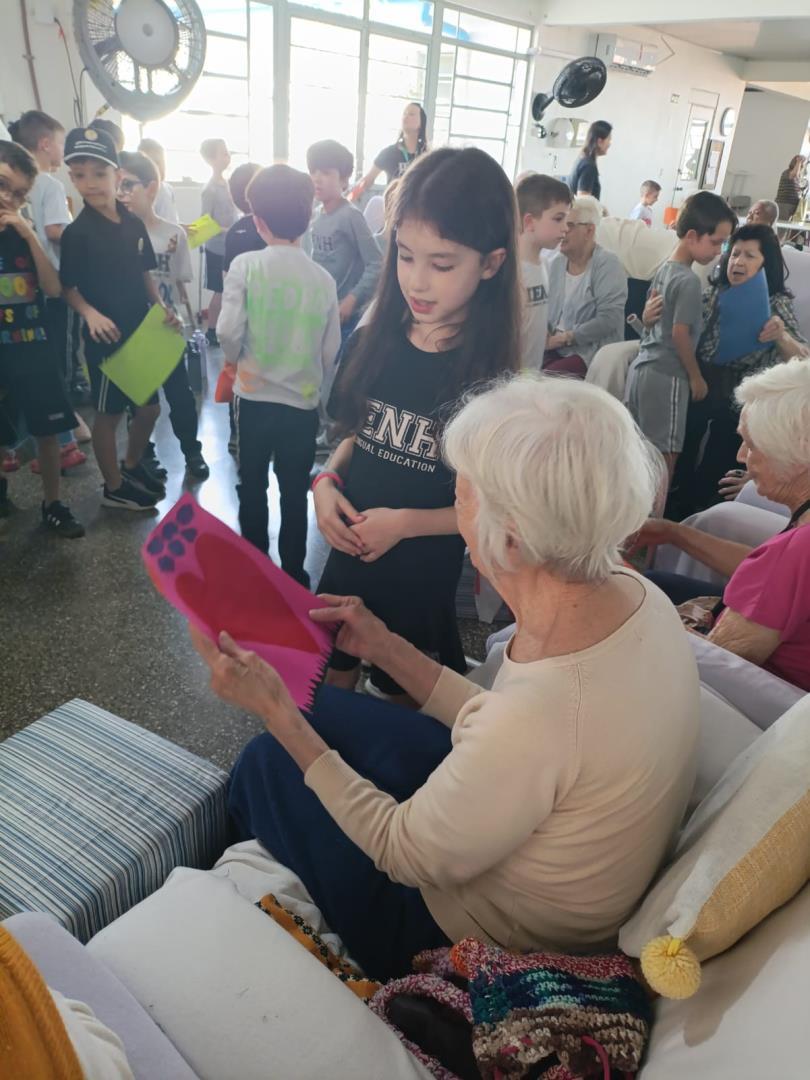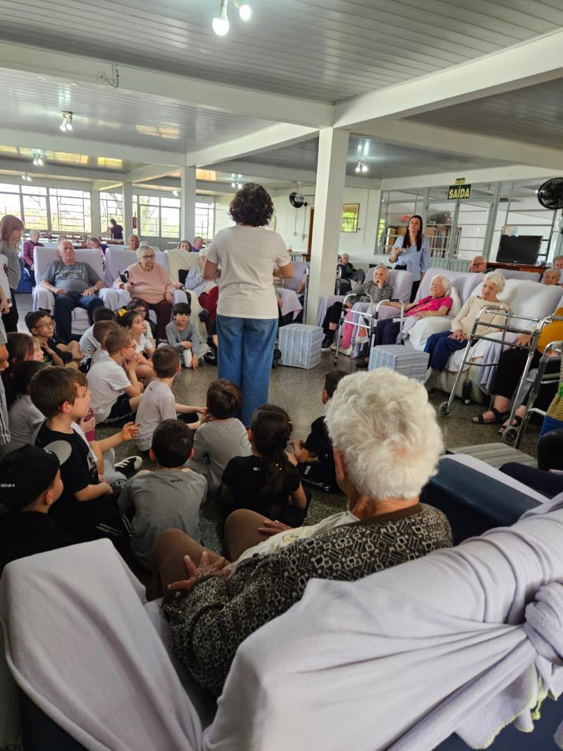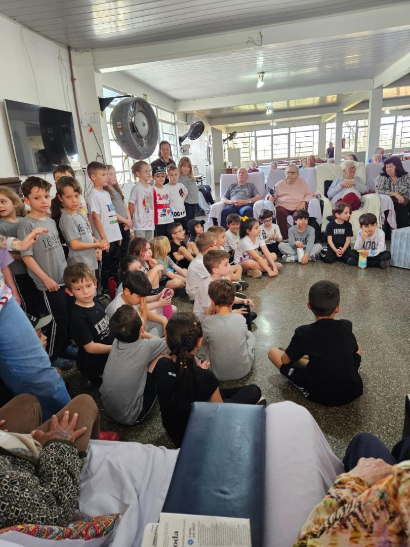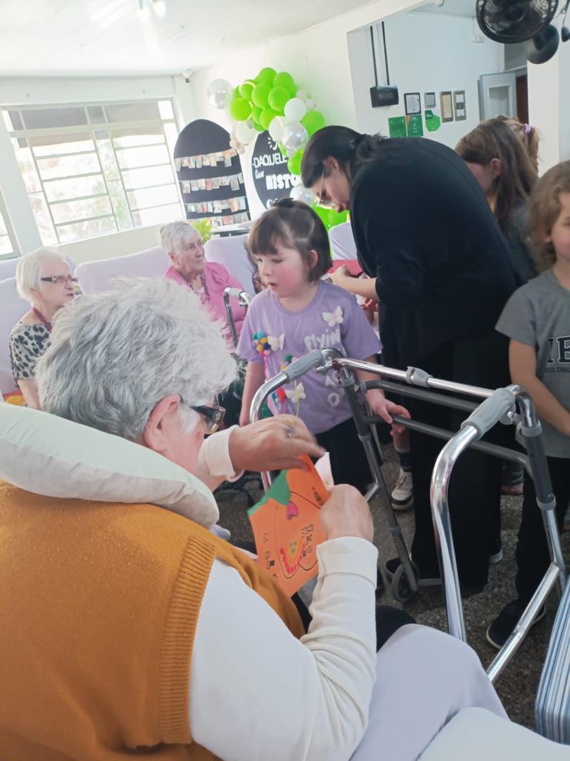 Na visita, as crianças demonstraram sensibilidade e carinho com os idosos, compartilhando curiosidades sobre suas vidas e ouvindo histórias dos vovôs e vovós do Lar. Além disso, entregaram desenhos produzidos em sala de aula, tornando o encontro ainda mais afetivo e significativo.