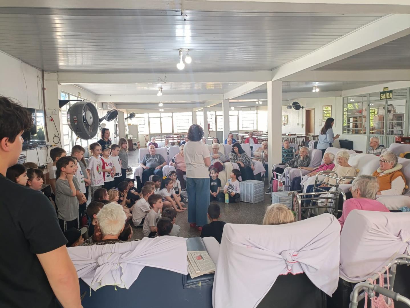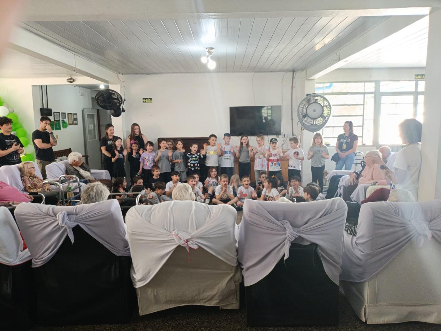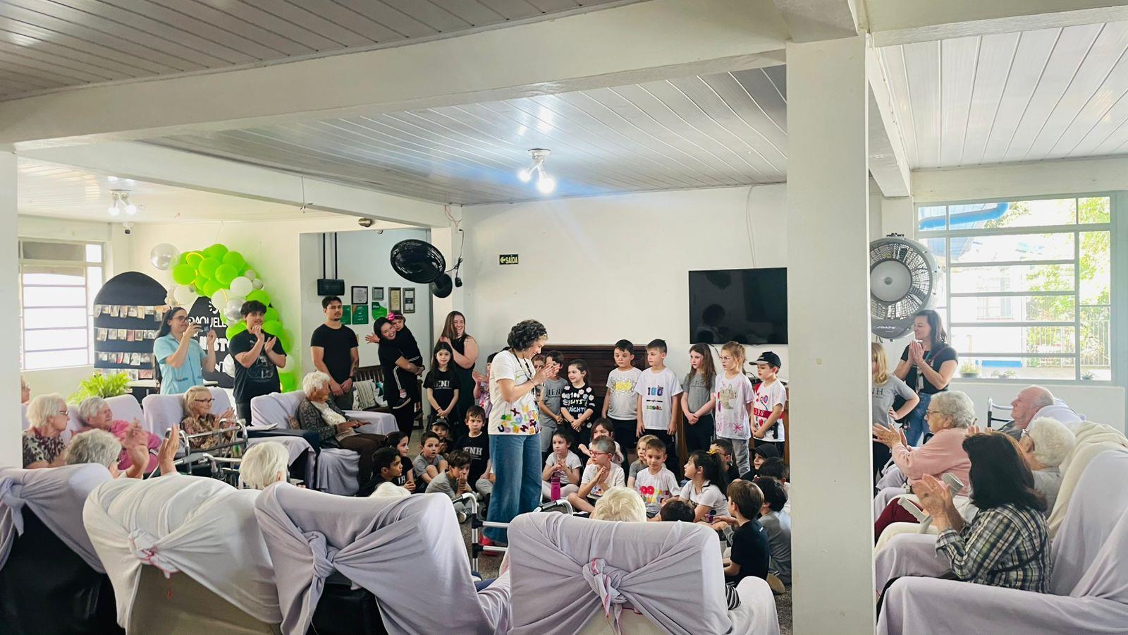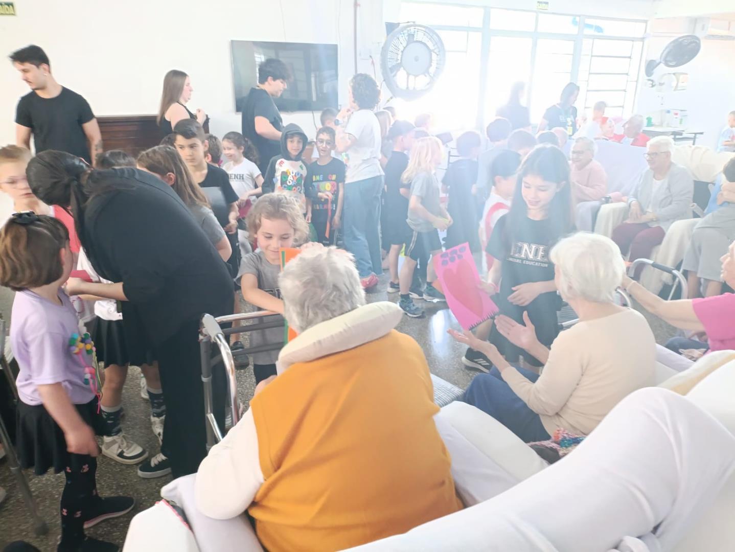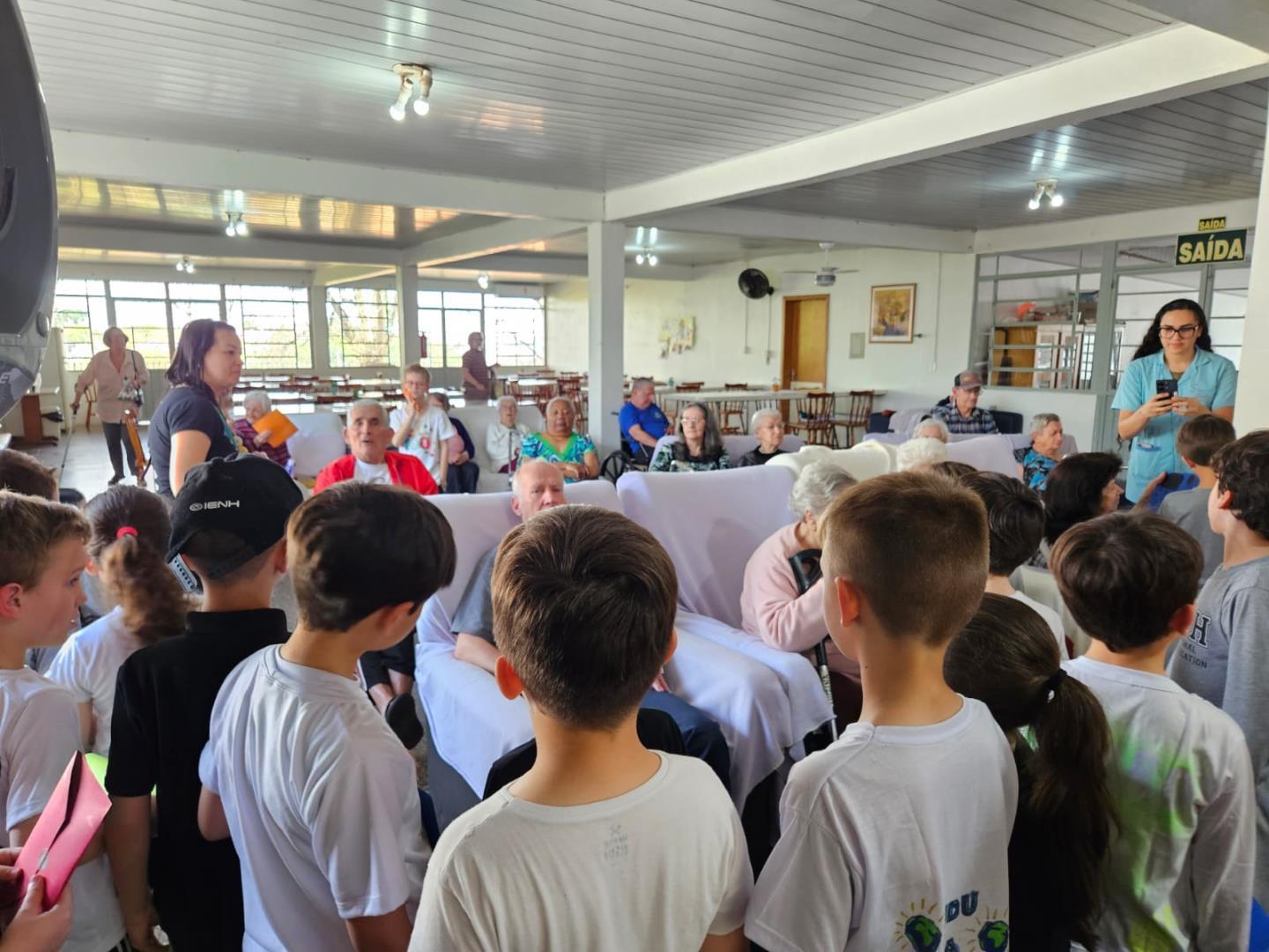 Na visita, as crianças demonstraram sensibilidade e carinho com os idosos, compartilhando curiosidades sobre suas vidas e ouvindo histórias dos vovôs e vovós do Lar. Além disso, entregaram desenhos produzidos em sala de aula, tornando o encontro ainda mais afetivo e significativo.