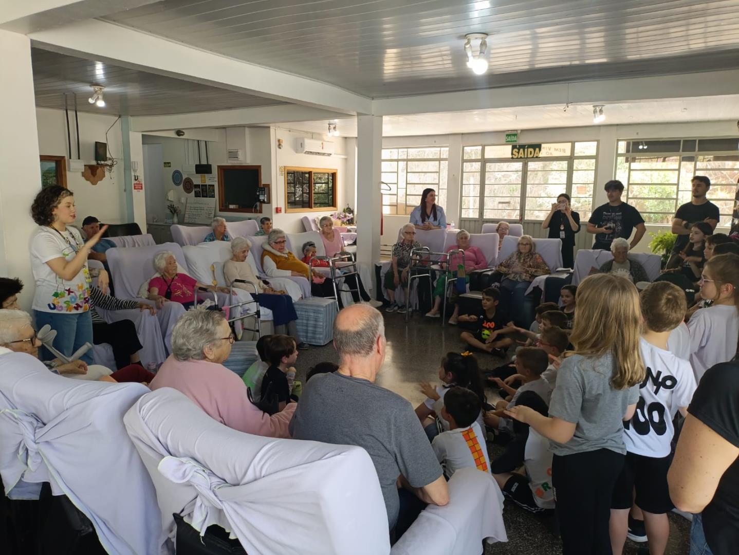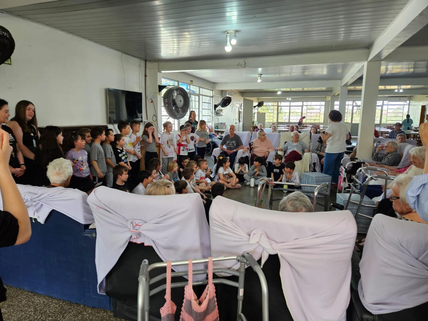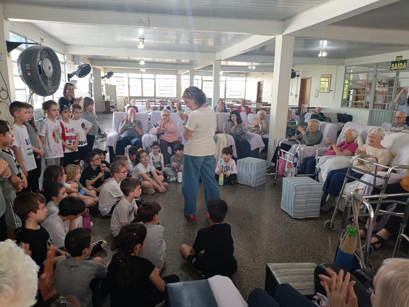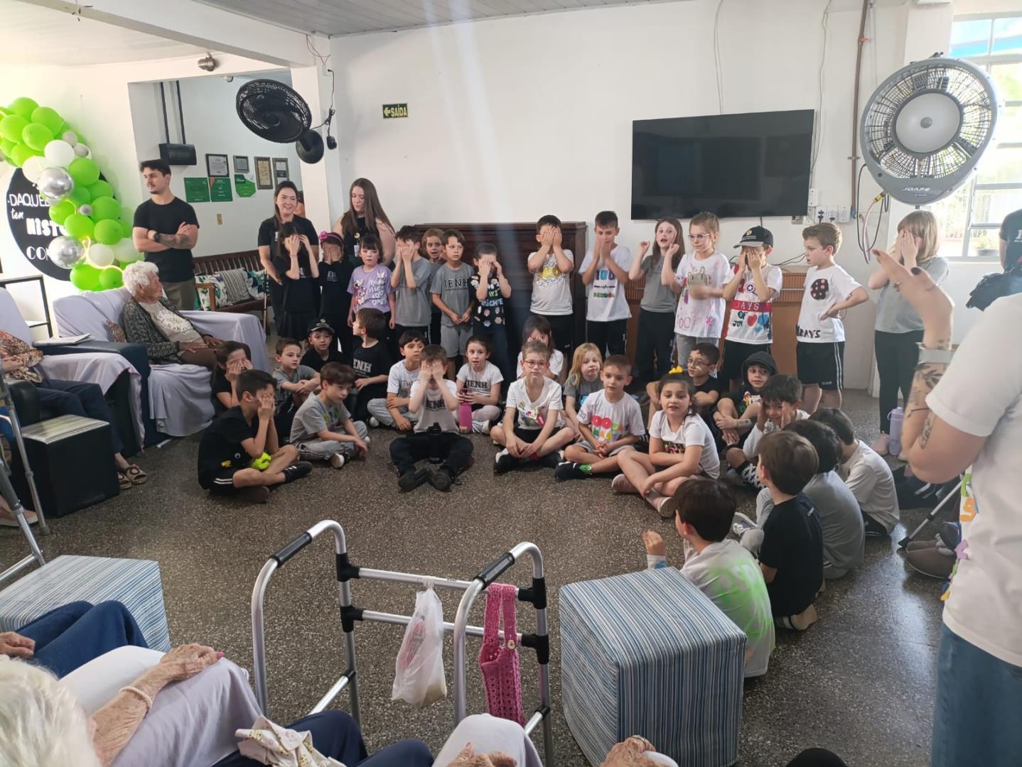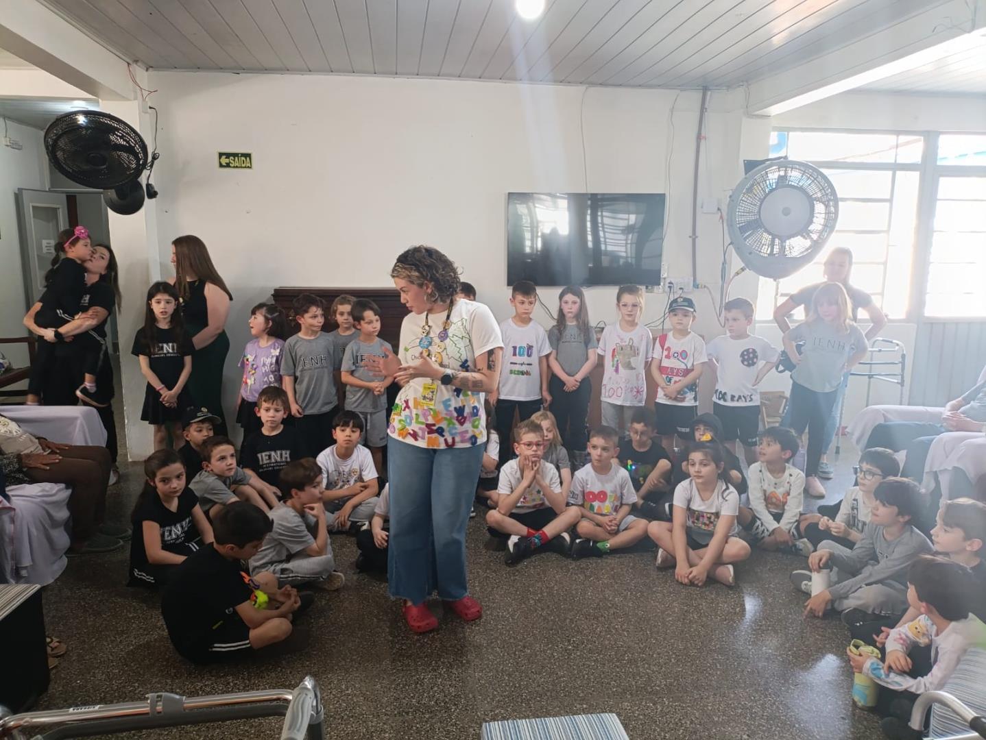 Na visita, as crianças demonstraram sensibilidade e carinho com os idosos, compartilhando curiosidades sobre suas vidas e ouvindo histórias dos vovôs e vovós do Lar. Além disso, entregaram desenhos produzidos em sala de aula, tornando o encontro ainda mais afetivo e significativo.