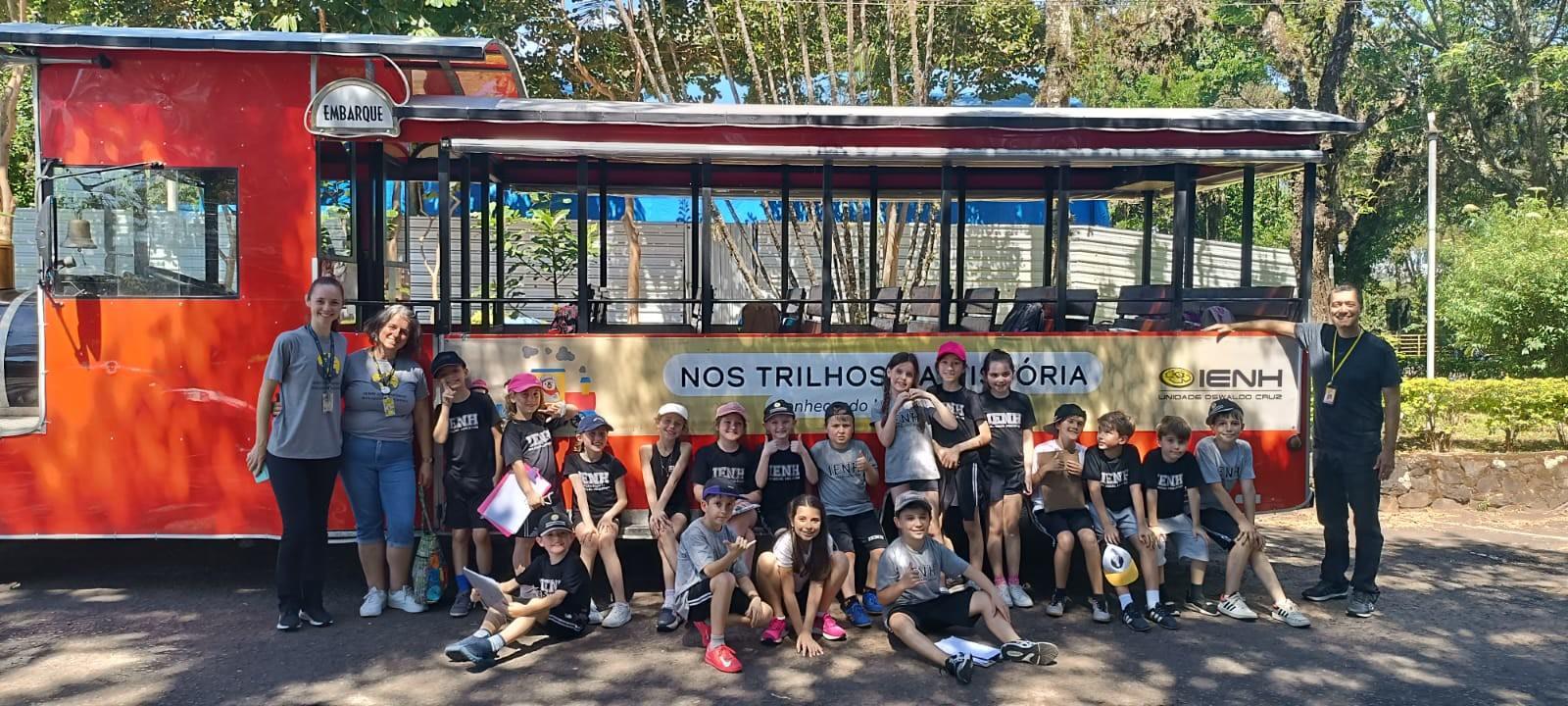 Com o objetivo de conhecer as marcas do passado e do presente em Novo Hamburgo e compreender os esforços dos antepassados na construção do espaço em que vivemos, os estudantes das turmas de Year 3 do Ensino Fundamental do Currículo Internacional Bilíngue da IENH - Unidade Oswaldo Cruz embarcaram em uma viagem especial: “Nos trilhos da história: conhecendo Novo Hamburgo”.