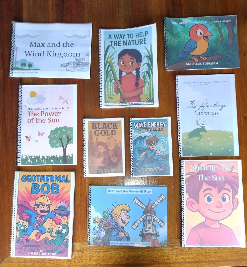 Depois da elaboração do texto em sala de aula, os alunos transformaram suas histórias em livros digitais, e as ilustrações foram criadas com o auxílio de Inteligência Artificial, proporcionando uma experiência inovadora e interativa.