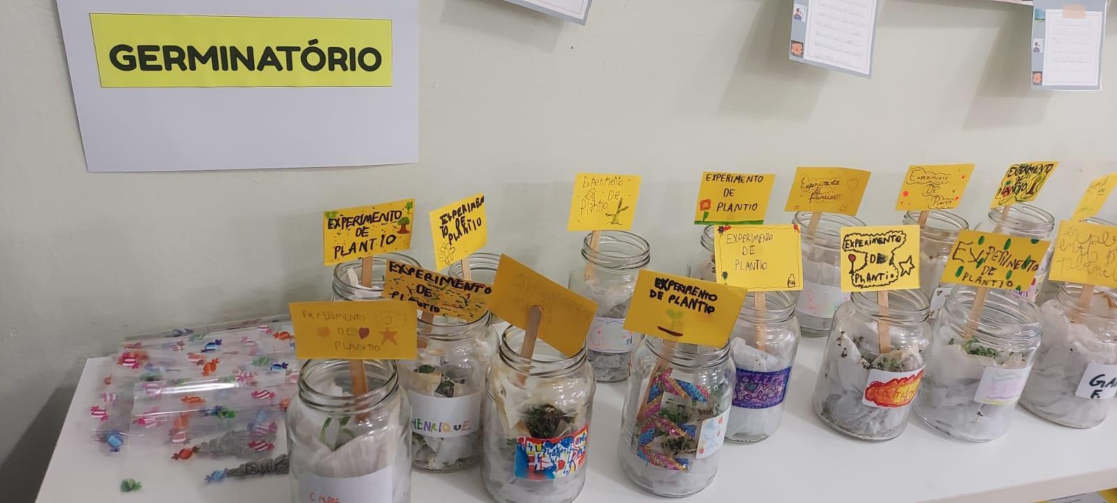 Além dessa atividade, as turmas também realizaram um experimento de plantio em papel, a fim de observar o processo de germinação em um espaço/material diferente, pois os estudantes já haviam plantado na terra, na horta escolar, e desejavam investigar outra forma de plantio, observando a germinação das sementes e as respectivas partes das plantas.