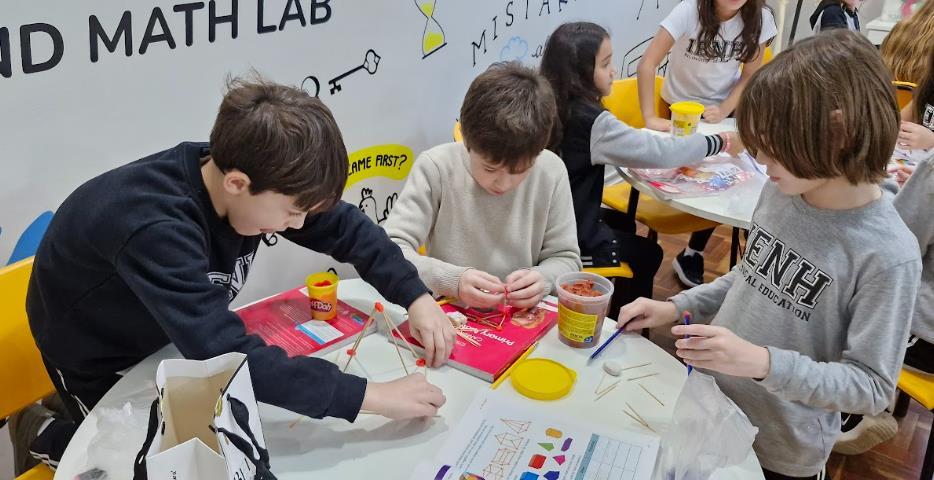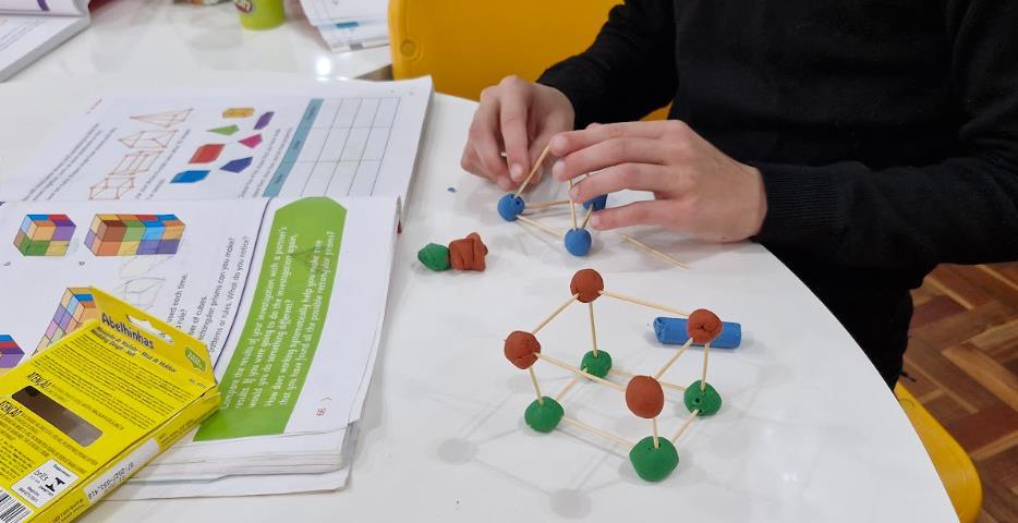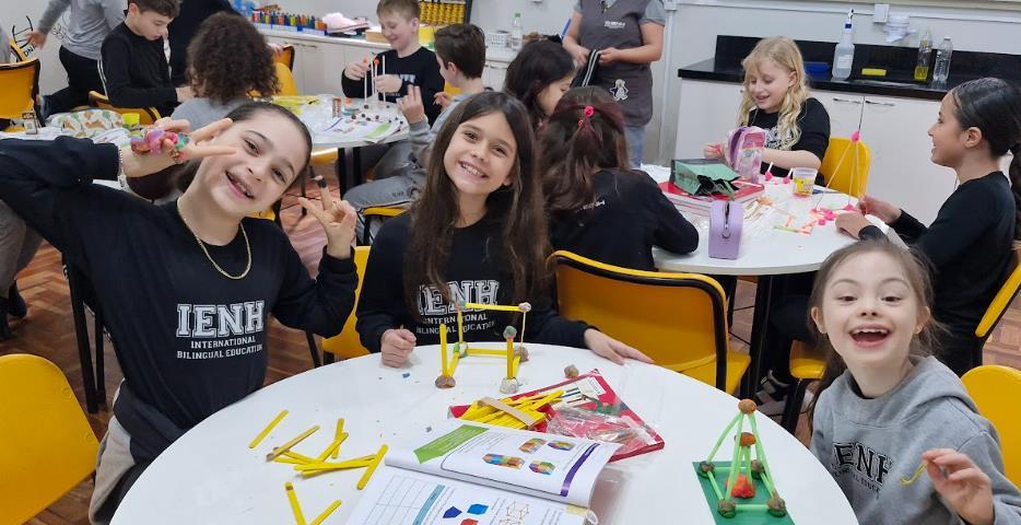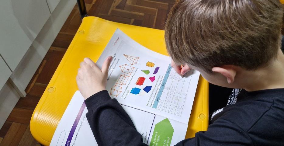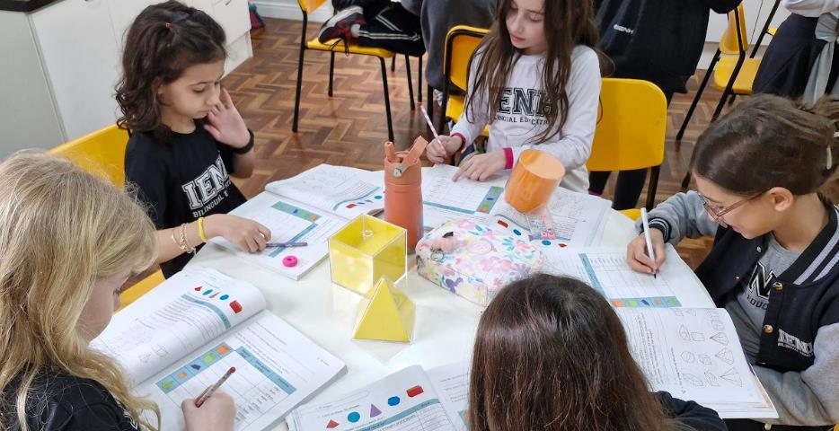 Os estudantes das turmas Year 3A e 3B do Ensino Fundamental do Currículo Internacional Bilíngue da IENH - Unidade Pindorama estão mergulhados no universo das formas geométricas nas aulas de Língua Inglesa. A proposta realizada nos meses de setembro e outubro, surgiu a partir do material didático Cambridge Primary Mathematics, adotado neste ano nas aulas de Math como parte do Currículo Internacional Bilíngue da IENH.