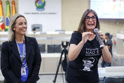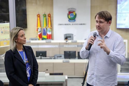Durante o momento, os vereadores Felipe Kuhn Braun e Professora Luciana Martins, integrantes da Comissão de Educação, saudaram os participantes.