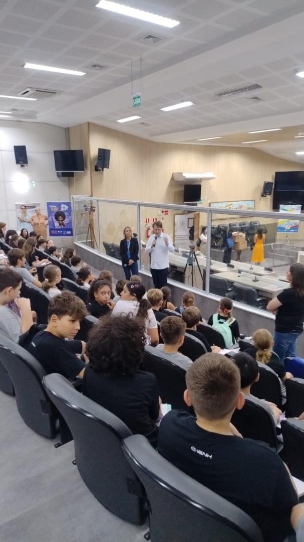 Lotando o Plenário da Câmara de Novo Hamburgo, as turmas do Year 5 do Ensino Fundamental do Currículo Internacional Bilíngue da IENH – Unidades Pindorama e Oswaldo Cruz, participaram da primeira palestra do Projeto Vereador Mirim. A ação, realizada no dia 17 de março, busca aproximar os estudantes do universo político e incentivar a formação cidadã.