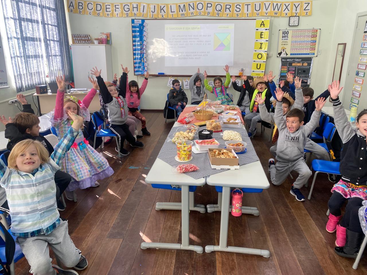 No dia 24 de junho, a IENH – Unidade Pindorama promoveu um lanche coletivo em comemoração ao Dia de São João. As turmas da Educação Infantil do Currículo Internacional Bilíngue (Early Years) ao Ensino Fundamental do Currículo Internacional Bilíngue (Primary) participaram da confraternização, que contou com lanches típicos juninos e muita animação.