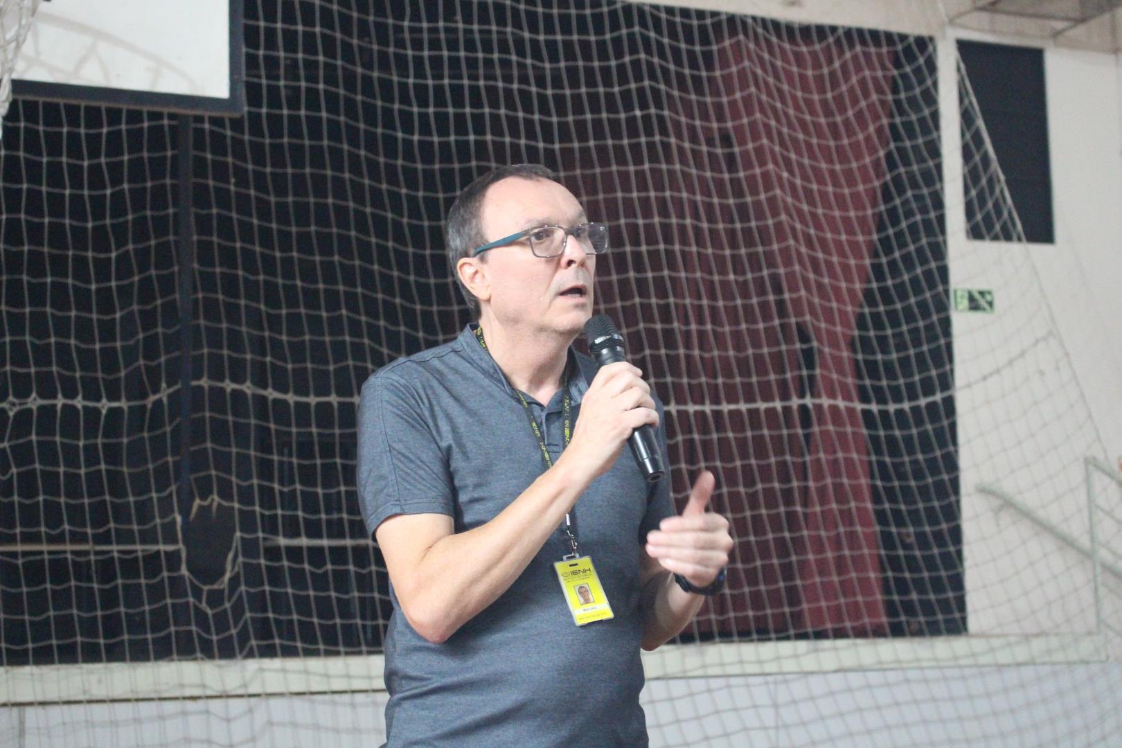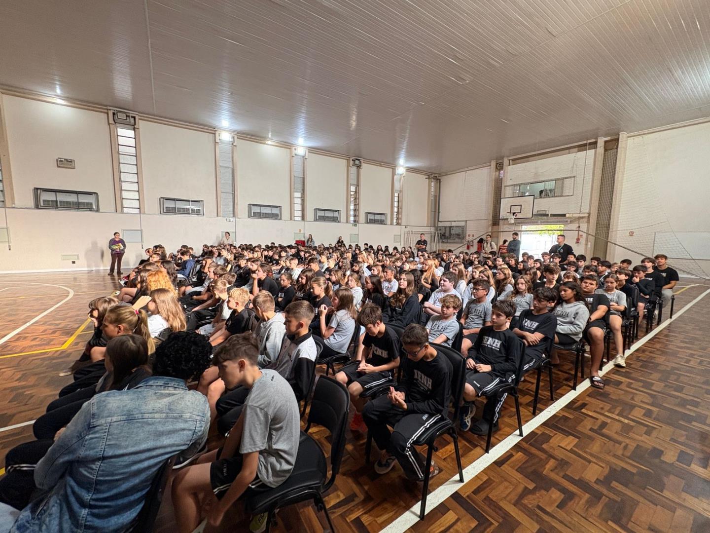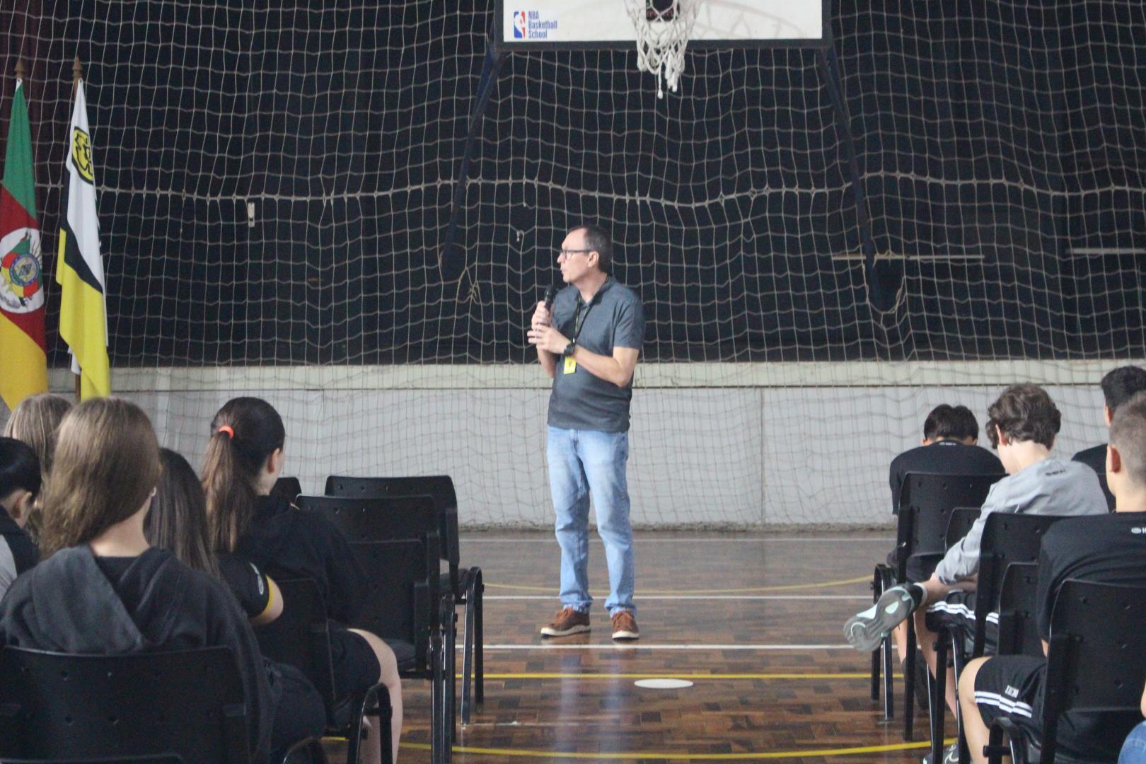 Já na Unidade Fundação Evangélica, a diretora administrativa da Secretaria de Cultura e Turismo de Novo Hamburgo, Amanda Becker, participou da programação com dois momentos no ginásio, voltados aos estudantes do Ensino Fundamental e do Ensino Médio. Durante os encontros, ela compartilhou informações e curiosidades sobre a cidade, destacando o número de praças e as ações desenvolvidas pela Casa das Artes de Novo Hamburgo para a comunidade. Ela também valorizou o museu Dalila Clementina Sperb, personagem histórica relevante na história da IENH, que receberá o acervo do artista Carlão.