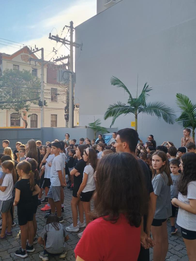 A Unidade Oswaldo Cruz também promoveu o hasteamento das bandeiras e uma reflexão sobre a cidade, conduzida pelo professor Gabriel de Souza. Ainda, como atividade coletiva, os estudantes participaram da confecção de uma bandeira, na qual assinaram seus nomes utilizando as cores que representam o município.
