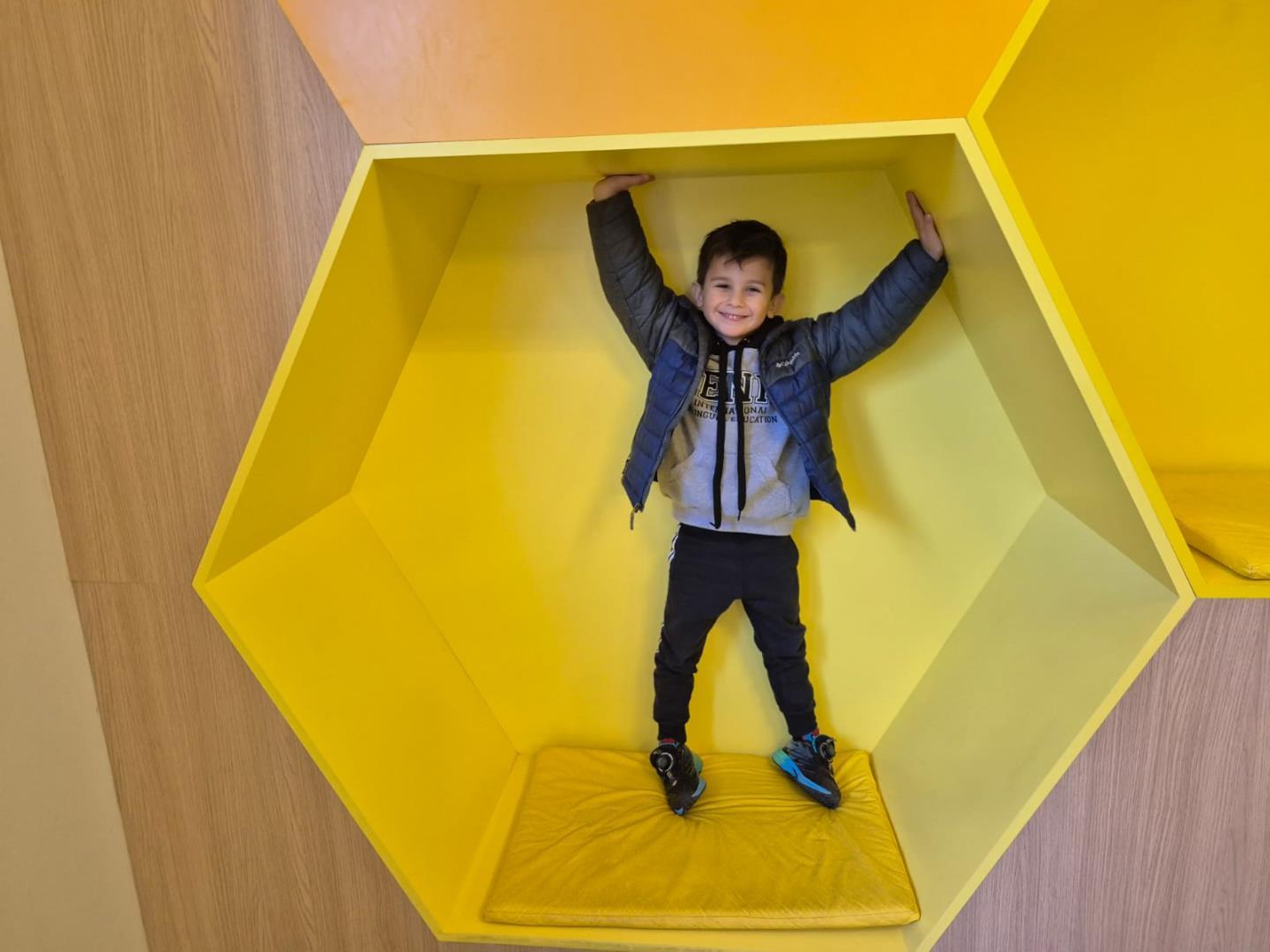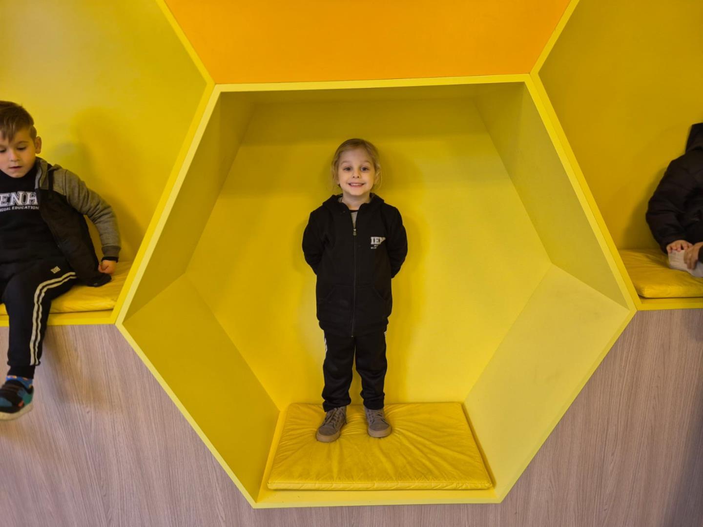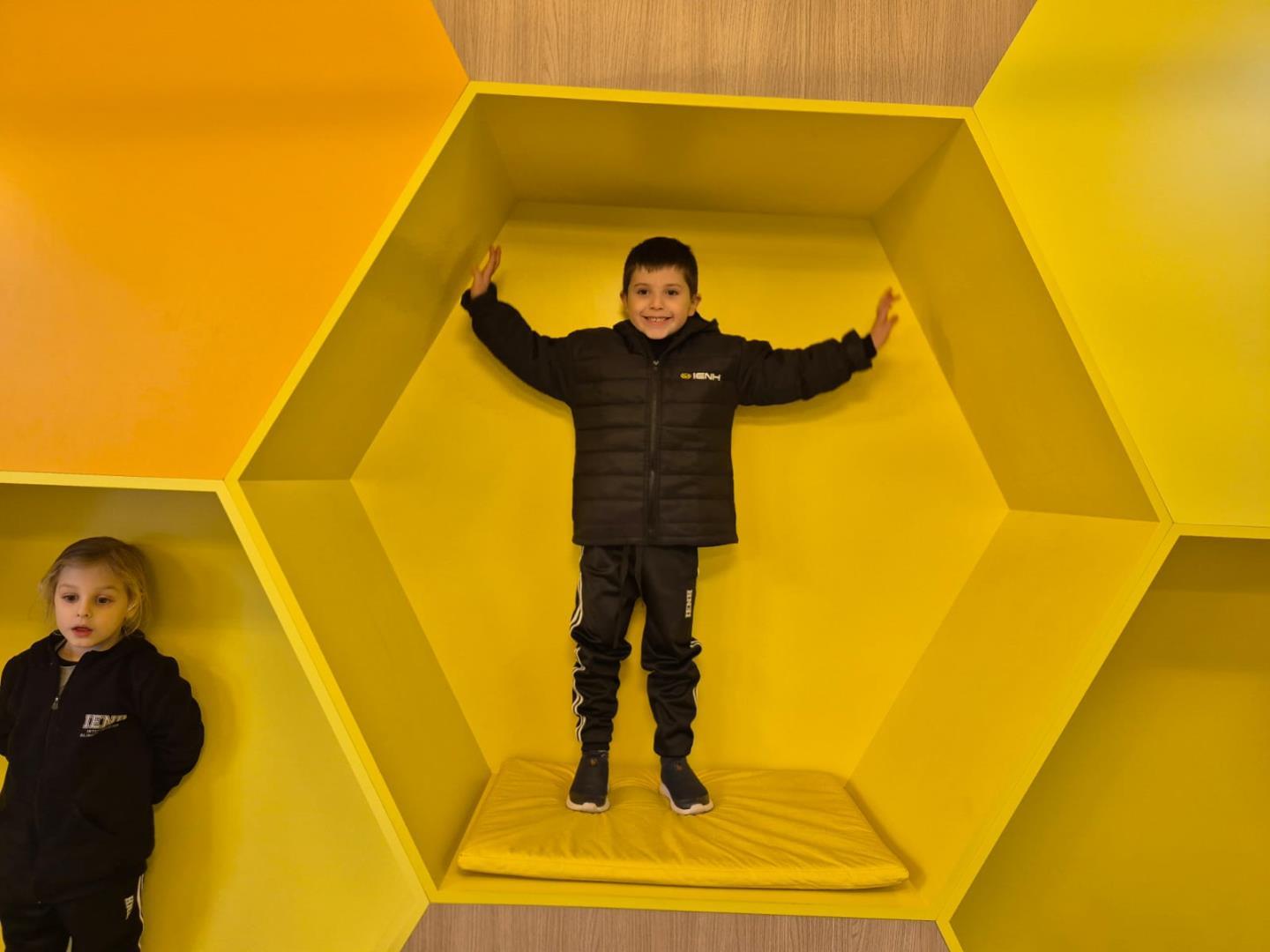 Durante o passeio, as crianças vivenciaram momentos de curiosidade e encantamento ao explorarem três espaços significativos: o Memorial do Meio Ambiente, o Memorial Indígena e o Espaço de Convivência, onde se encantaram com uma parede de colmeias. Nesse ambiente lúdico e sensorial, puderam se imaginar como verdadeiras abelhinhas, registrando tudo com muitas fotos e sorrisos.