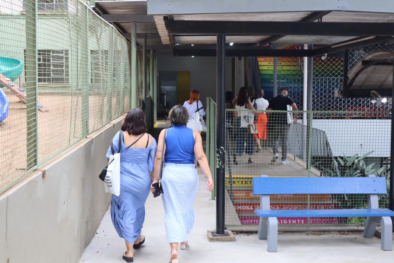Durante o percurso, os visitantes puderam observar as instalações, salas de aula e espaços pedagógicos, bem como tirar dúvidas sobre a metodologia e a proposta educacional da escola.