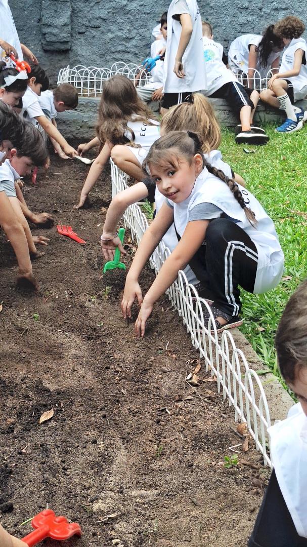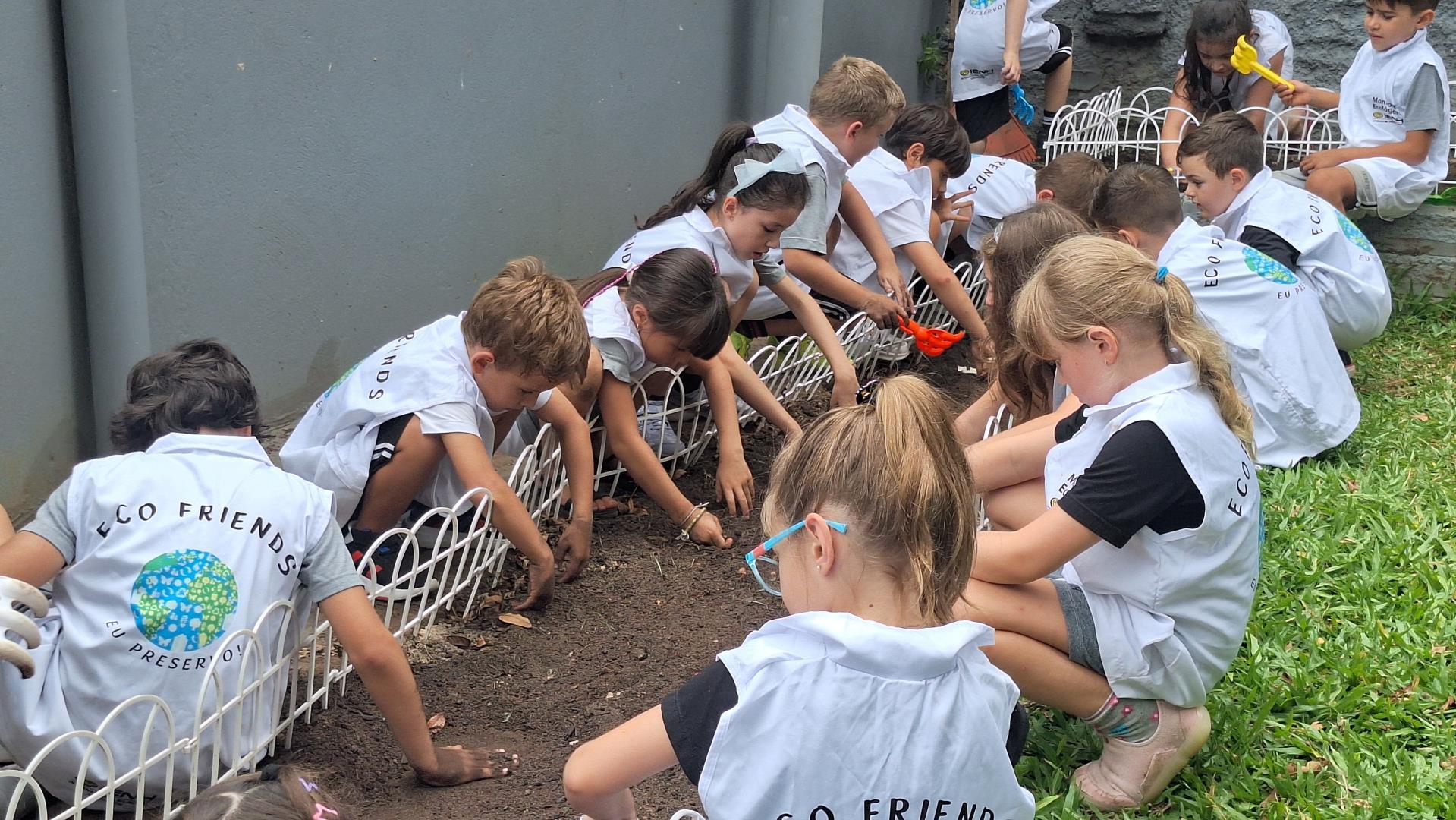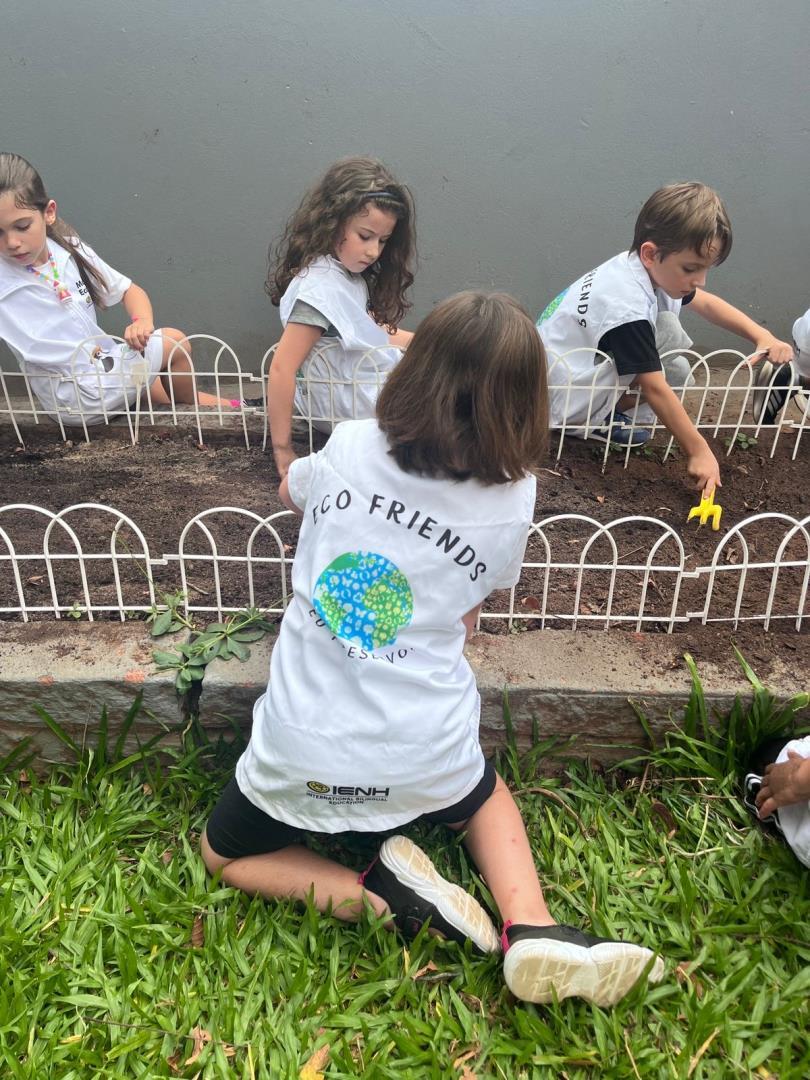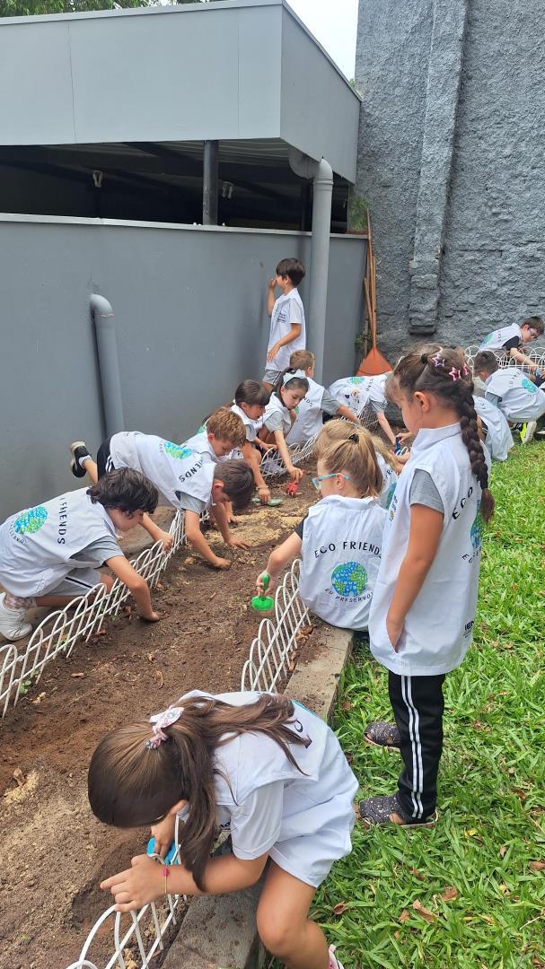 Os Eco Friends tiveram papel de destaque ao exercerem liderança e responsabilidade, auxiliando os colegas e incentivando o cuidado com o meio ambiente durante todo o processo. Além disso, os estudantes participaram ativamente do manejo da horta, realizando ações como mexer a terra, adubar e regar.