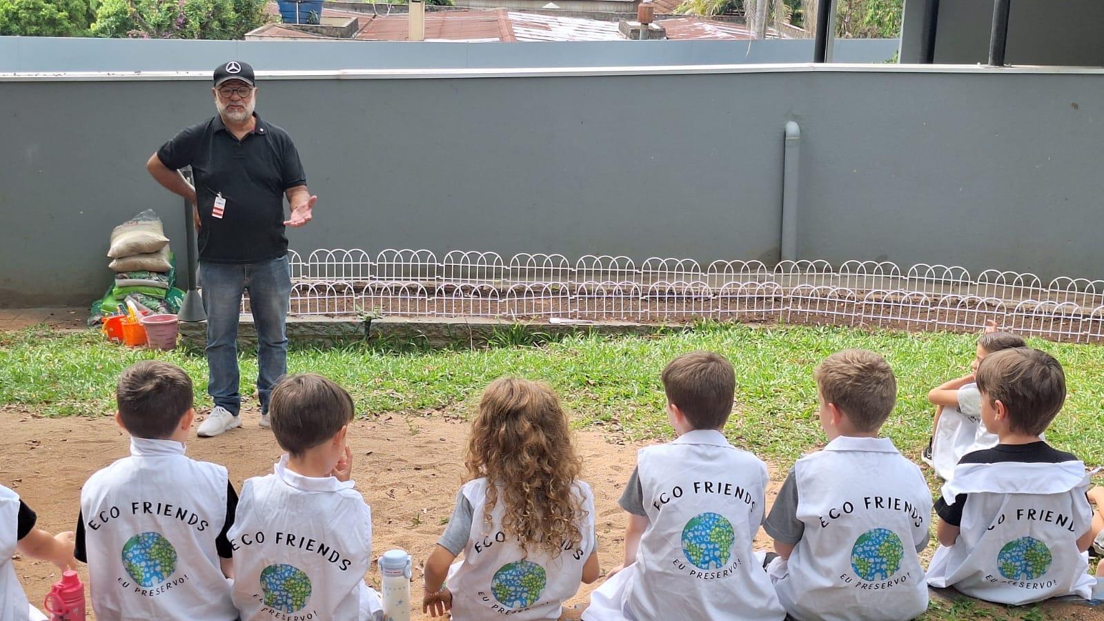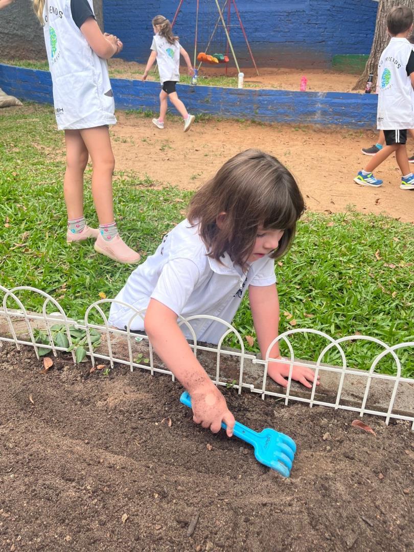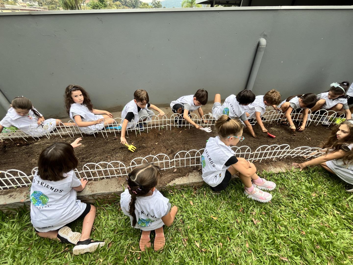 Os Eco Friends tiveram papel de destaque ao exercerem liderança e responsabilidade, auxiliando os colegas e incentivando o cuidado com o meio ambiente durante todo o processo. Além disso, os estudantes participaram ativamente do manejo da horta, realizando ações como mexer a terra, adubar e regar.