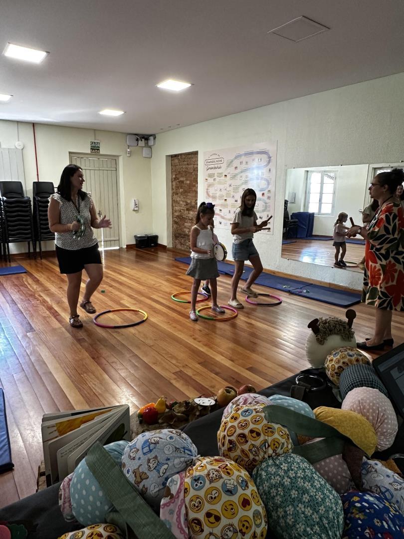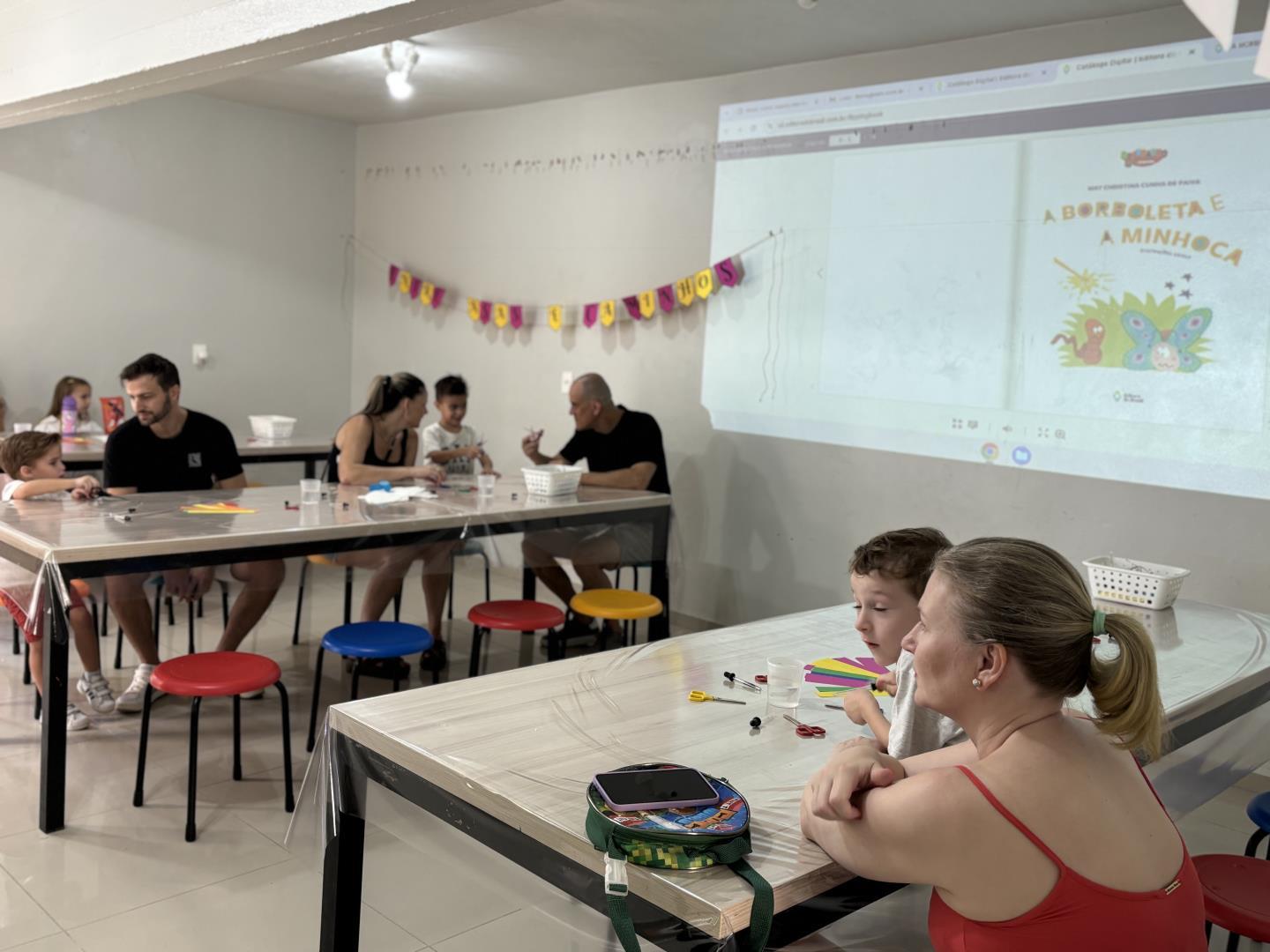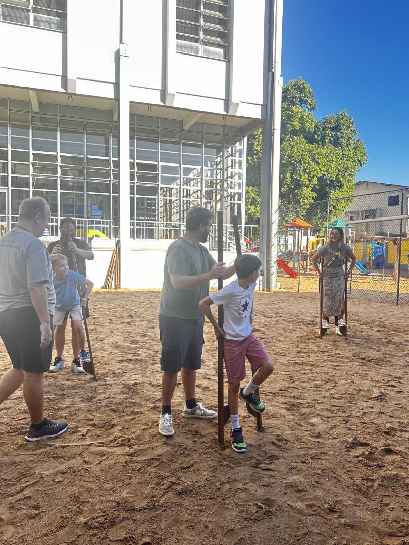 Entre os ambientes explorados estiveram a Biblioteca, o Laboratório de Matemática, a Educação Tecnológica, a Sala de Arte, a Sala Multiuso com vivência musical e a quadra coberta. Em cada local, as famílias foram convidadas a vivenciar experiências lúdicas, que estimularam a imaginação e a interação.