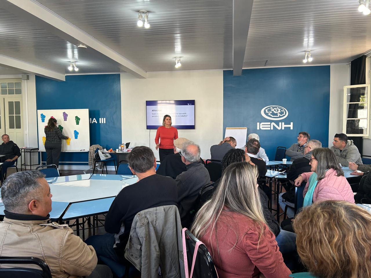 No dia 25 de julho, as equipes de Higienização, Manutenção e Portaria das três unidades da IENH participaram do workshop “Cultivando as Relações: a Comunicação como Semente de Transformação”, conduzido por Vivian Sarti. A manhã foi marcada por momentos de troca, escuta e aprendizado, fortalecendo o sentimento de pertencimento e valorização dessas equipes tão essenciais para o bom funcionamento da escola.