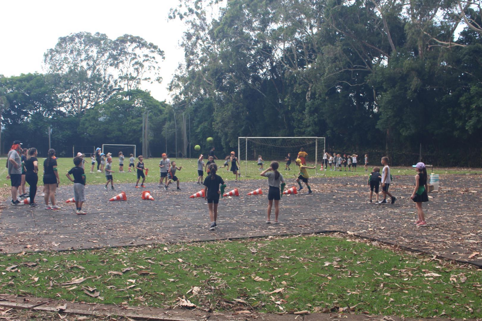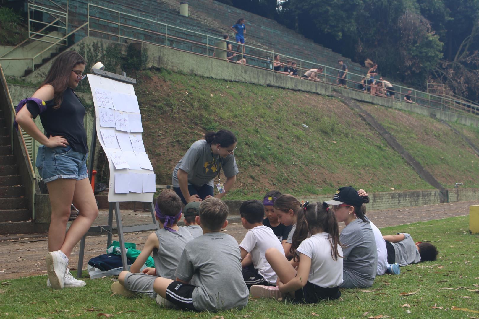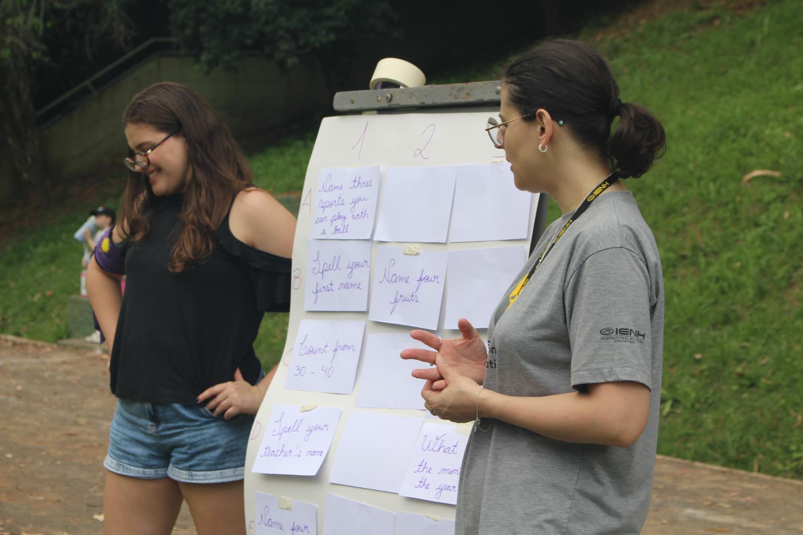 As turmas utilizaram as quadras cobertas e o campão para participar de uma gincana com atividades esportivas típicas de países de língua inglesa, ao mesmo tempo que praticavam o idioma. Na gincana, eles foram divididos em grupos, identificados por cores e, além disso, contaram com a ajuda dos estudantes do 3rd Grade do Ensino Médio da IENH – Unidade Fundação Evangélica.