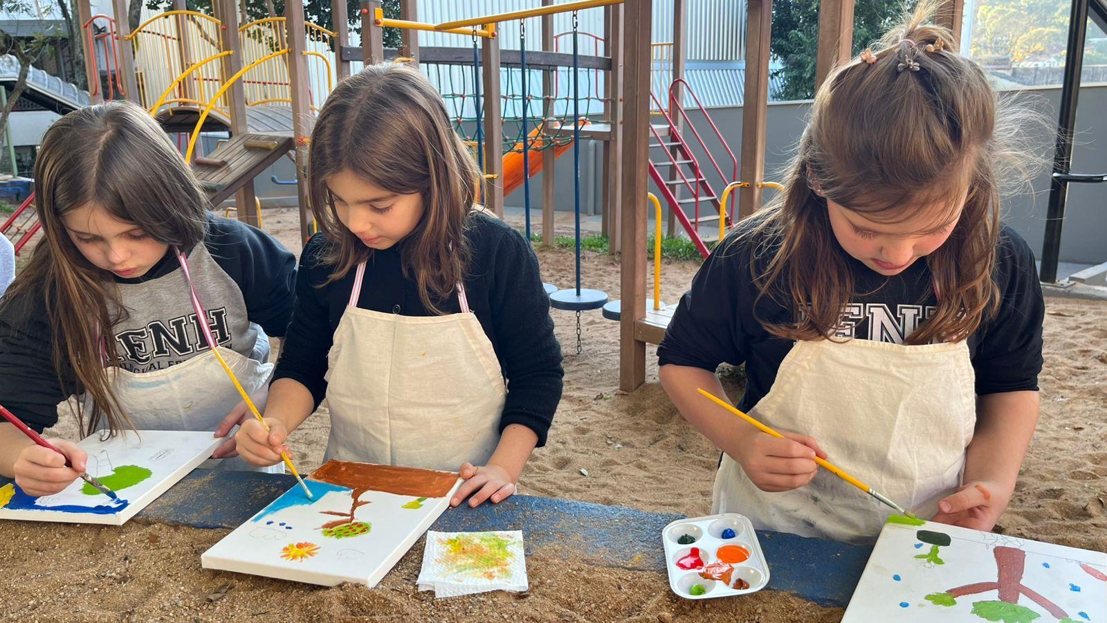 Com o apoio das professoras Daiane Kochenborger, Simone Ledur Marks e Scheila Lauck, a proposta convidou os alunos a mergulharem no universo do livro "A Semente", de Christina Dias, obra trabalhada pelas turmas ao longo do primeiro semestre. A releitura das imagens ganhou vida através da pintura em tela, técnica escolhida para expressar, com liberdade e cor, as interpretações das crianças.
