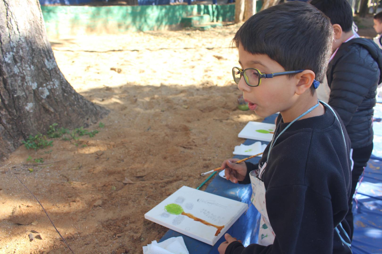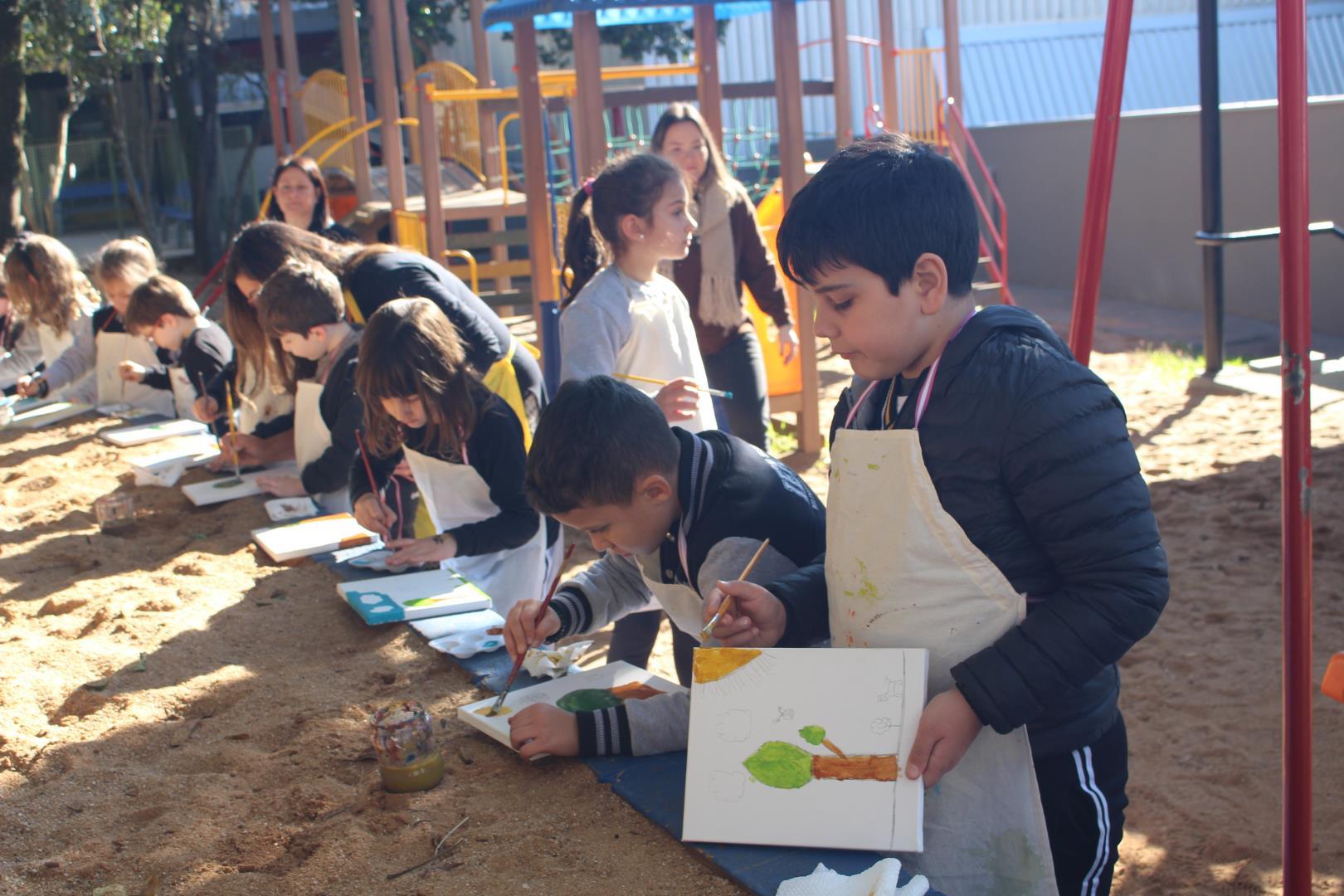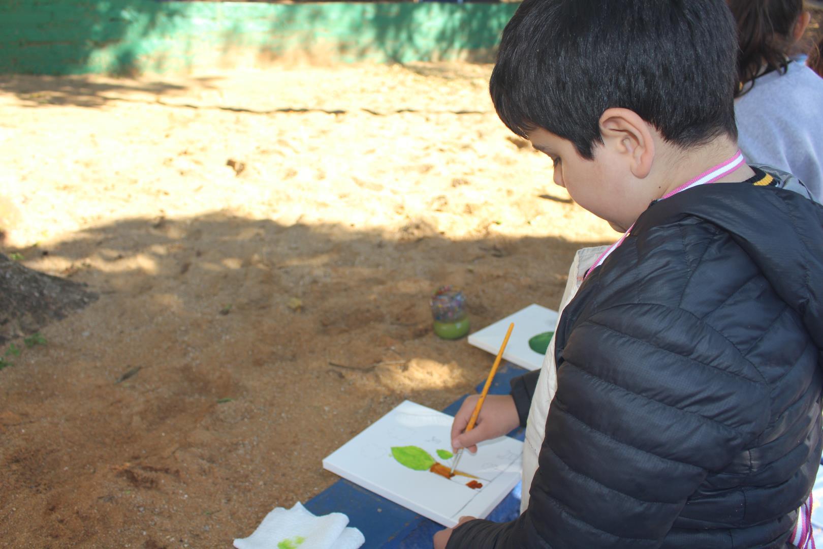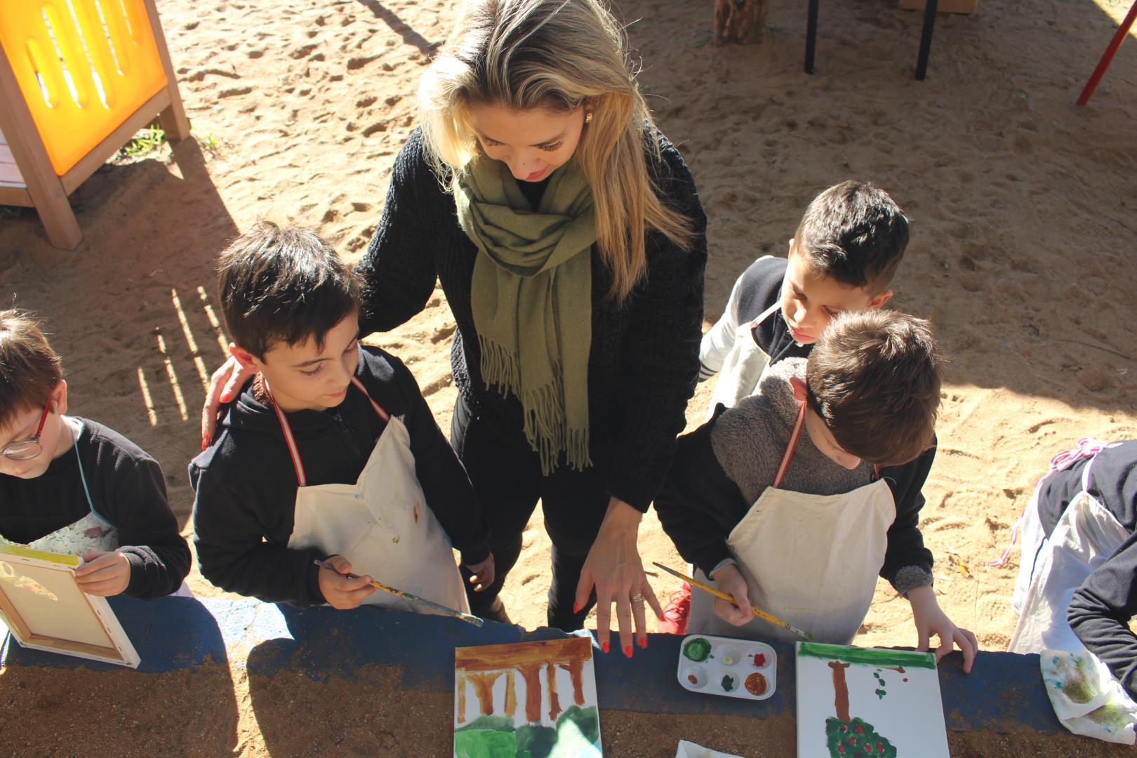A atividade aconteceu ao ar livre, no pátio Florestinha, onde o ambiente natural se misturou ao processo criativo. “Foi um momento de liberdade artística em contato com a natureza”, destacou a professora Daiane.