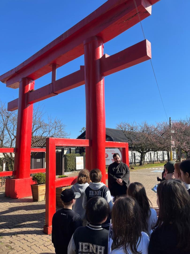 O grupo almoçou no Tênis Clube de São Leopoldo e, após o intervalo, seguiu viagem para Ivoti. Lá, os estudantes conheceram a Ponte do Imperador e o Núcleo de Casas Enxaimel, onde os guias explicaram aspectos históricos e culturais importantes para a formação da cidade e da região. Os alunos também visitaram, pela primeira vez, a Colônia Japonesa de Ivoti, ampliando ainda mais sua compreensão sobre a diversidade cultural do Vale dos Sinos.