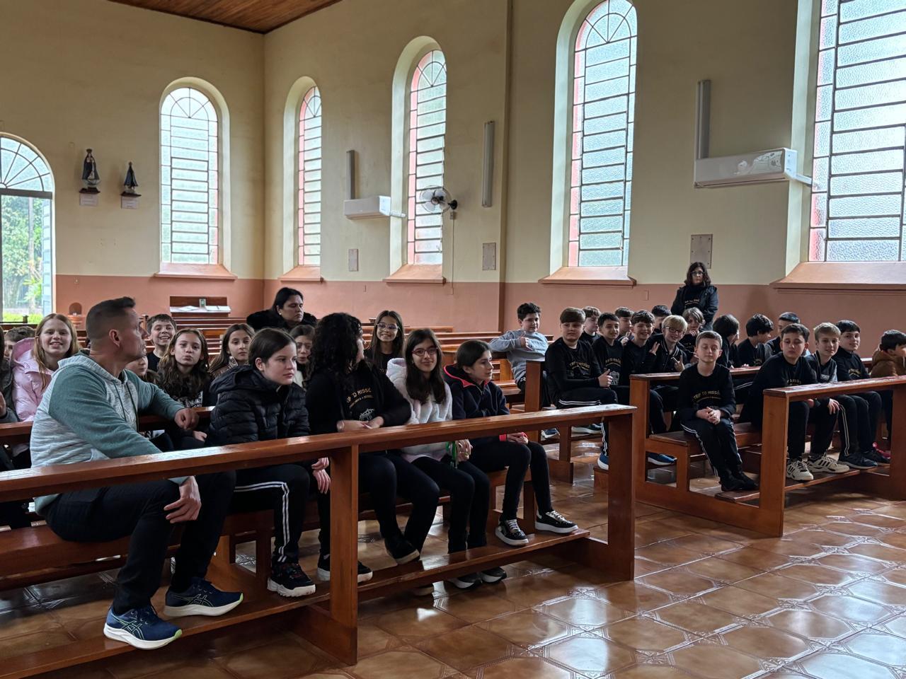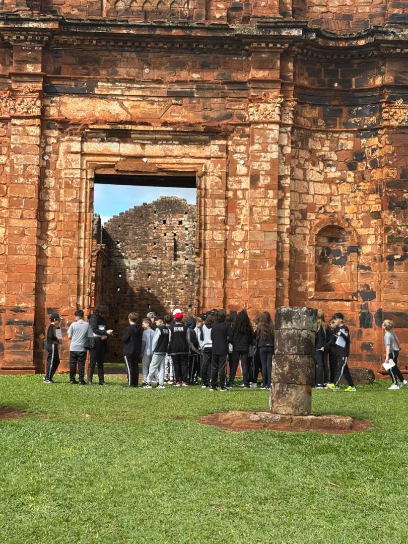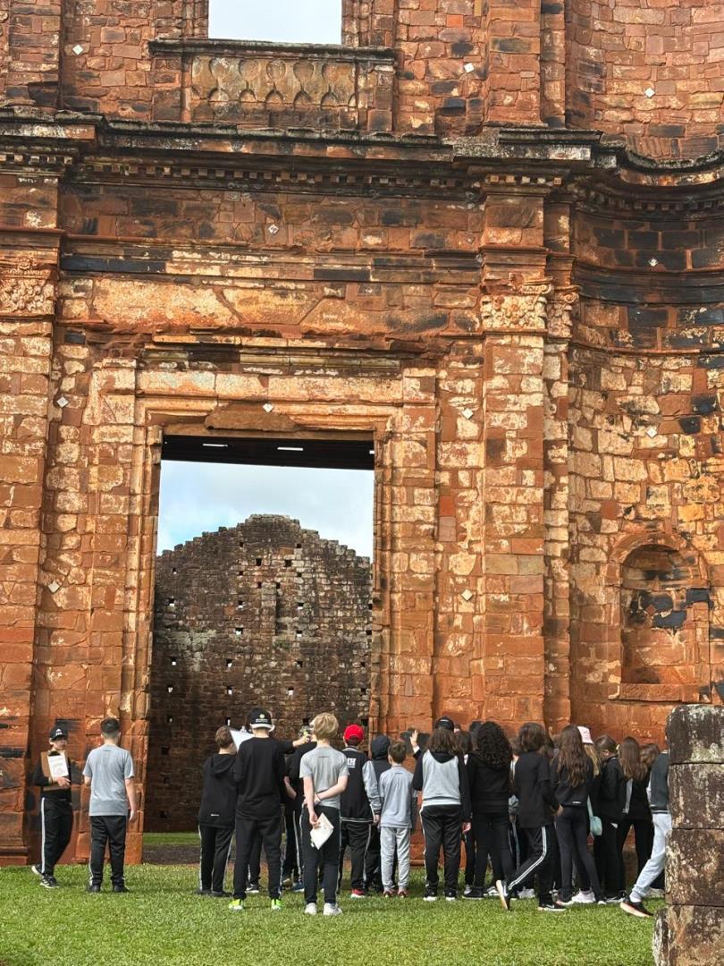 No dia seguinte, após o café da manhã, o grupo conheceu as ruínas de São Miguel das Missões, explorando o acervo histórico e o museu local. A visita foi enriquecida por uma aula com guia sobre os Sete Povos das Missões. Depois do almoço, os alunos seguiram até Santo Ângelo para conhecer pontos turísticos como o Museu Municipal, a Igreja Matriz e a Praça Central.