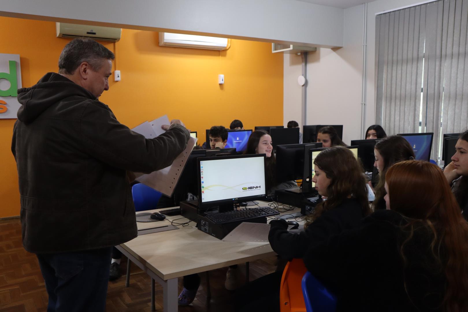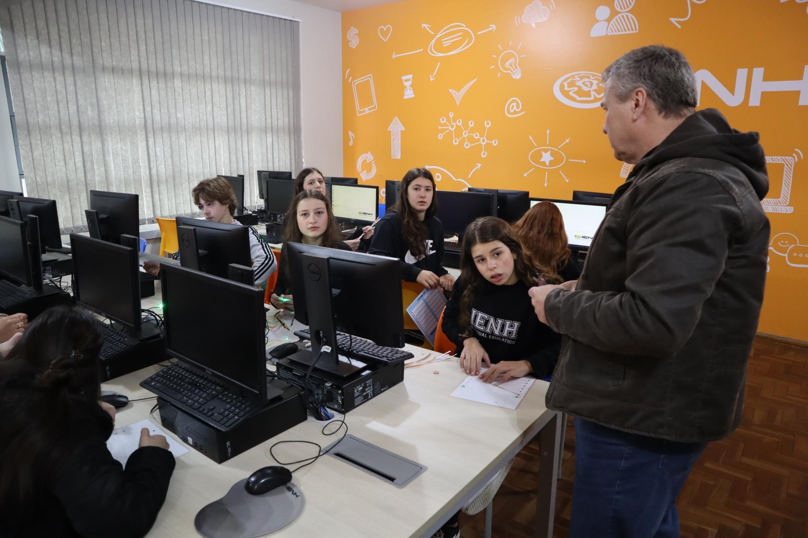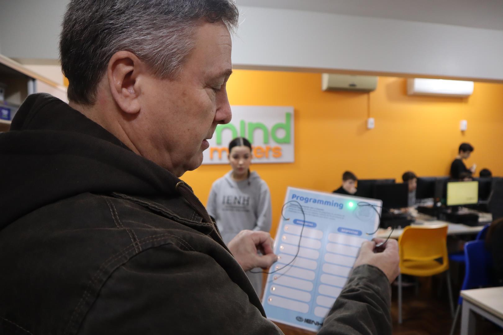 Os alunos do Year 8C do Ensino Fundamental do Currículo Internacional Bilíngue da IENH – Unidade Fundação Evangélica participaram de uma atividade especial na aula de Programming, conduzida pelo professor Fabian Viégas, na qual construíram um jogo lúdico utilizando circuitos elétricos.
